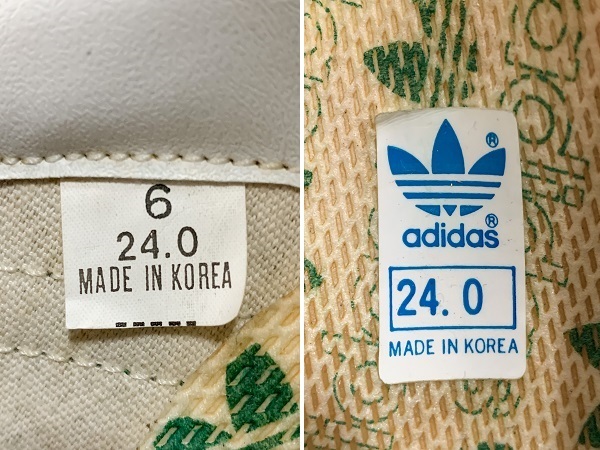 ADIDAS(アディダス)の「UNKNOWN (モデル名不詳)」ビンテージスニーカー、1980年代製。MADE IN KOREA(韓国製)。