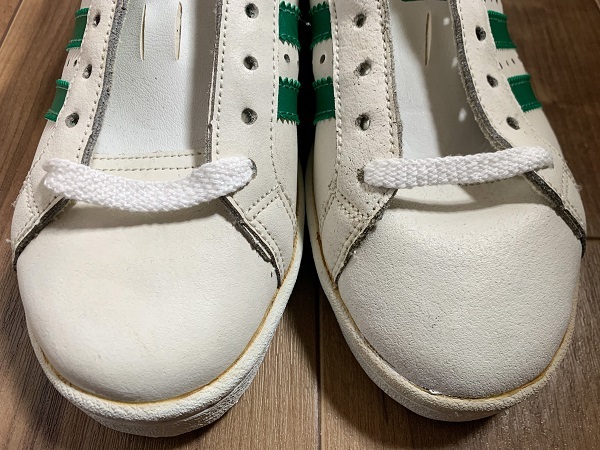 こちらは1980年代に韓国工場で製造された一品でオールドモデル特有のシャープなシルエットに型押しなしのロゴプリント、当時物ならではのベーシックな配色などファン垂涎のディテールで、ビンテージモデルならではの雰囲気ある一足です。