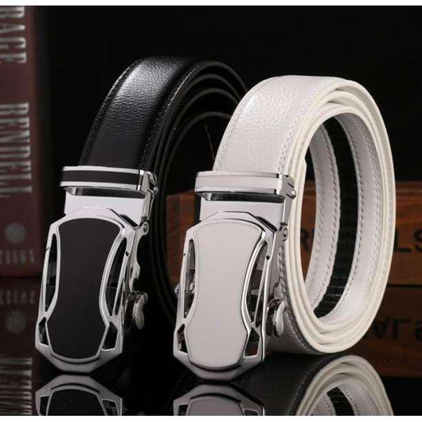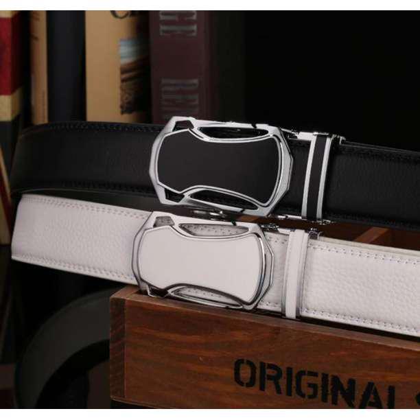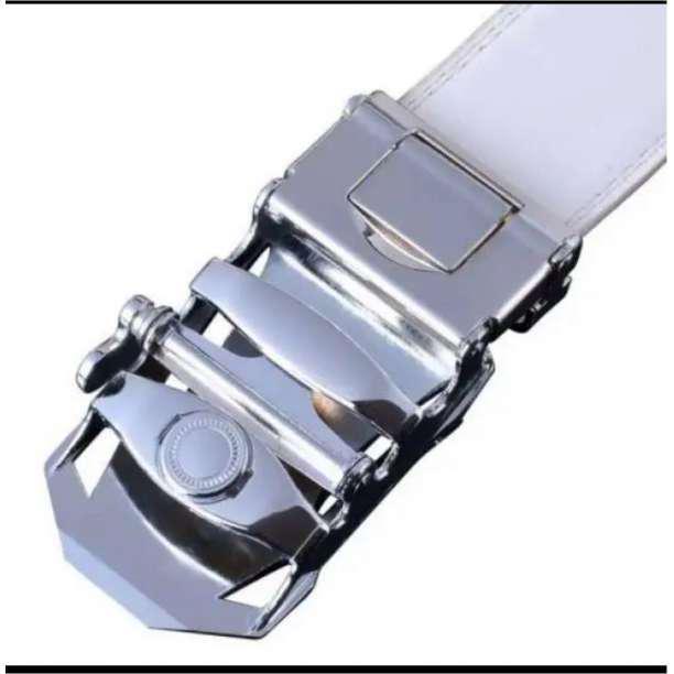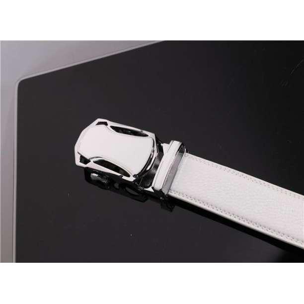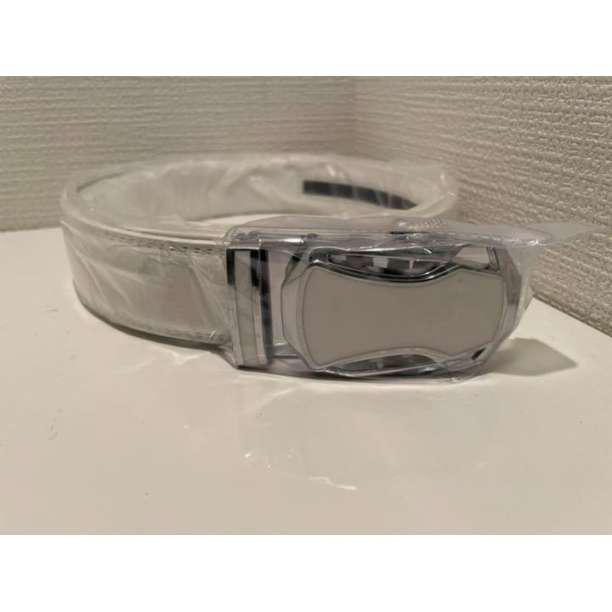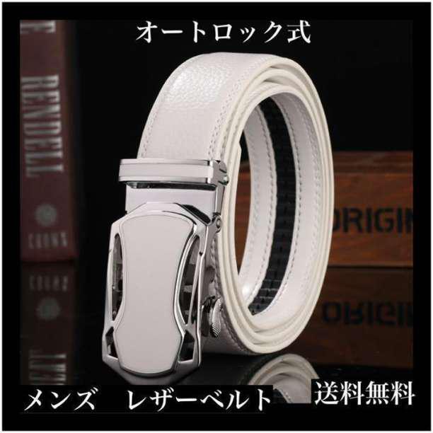 メンズ ベルト 流線形 メタリック オートロック式 ビジネス 牛革 レザー 白 ゴルフベルト フォーマル カジュアル レザーベルト