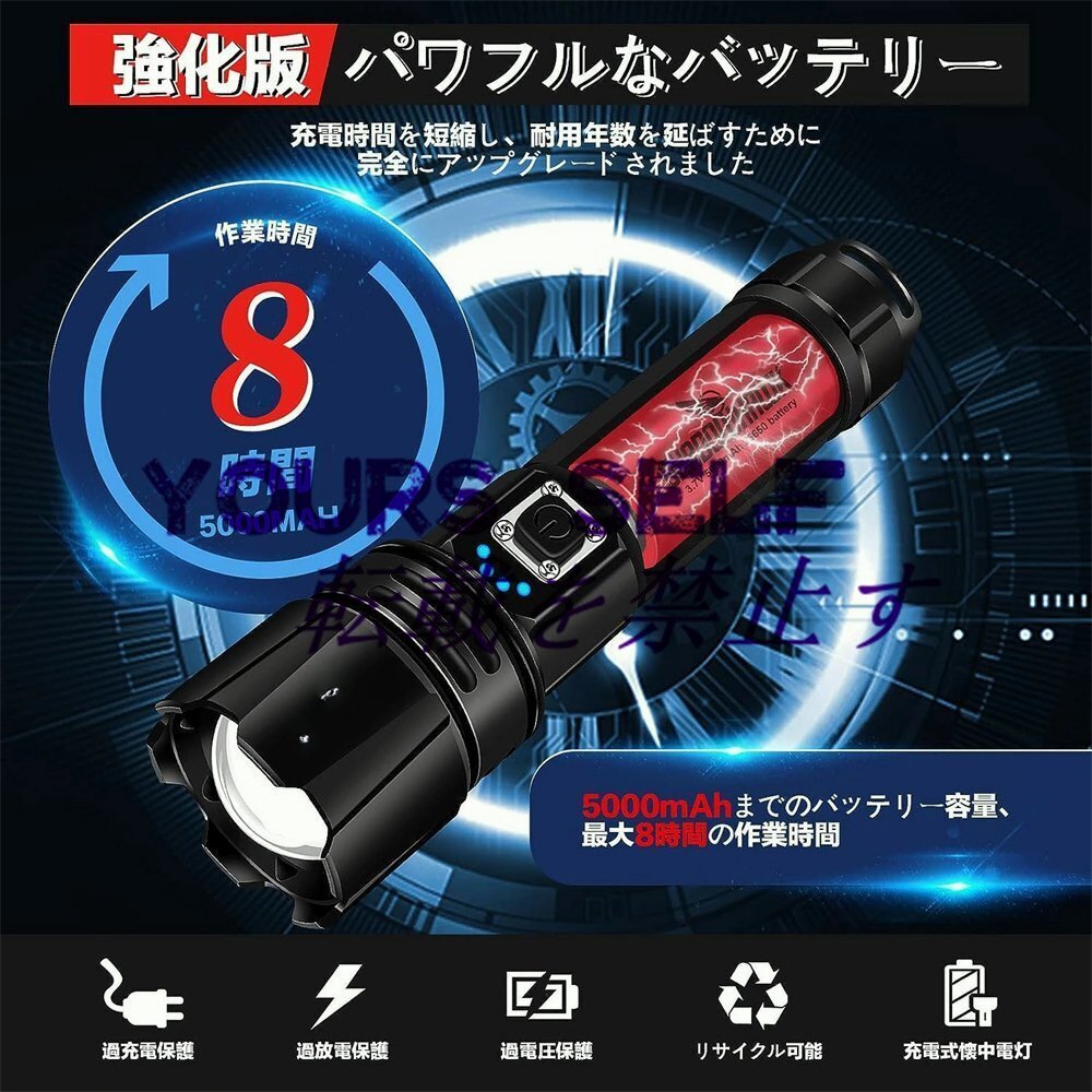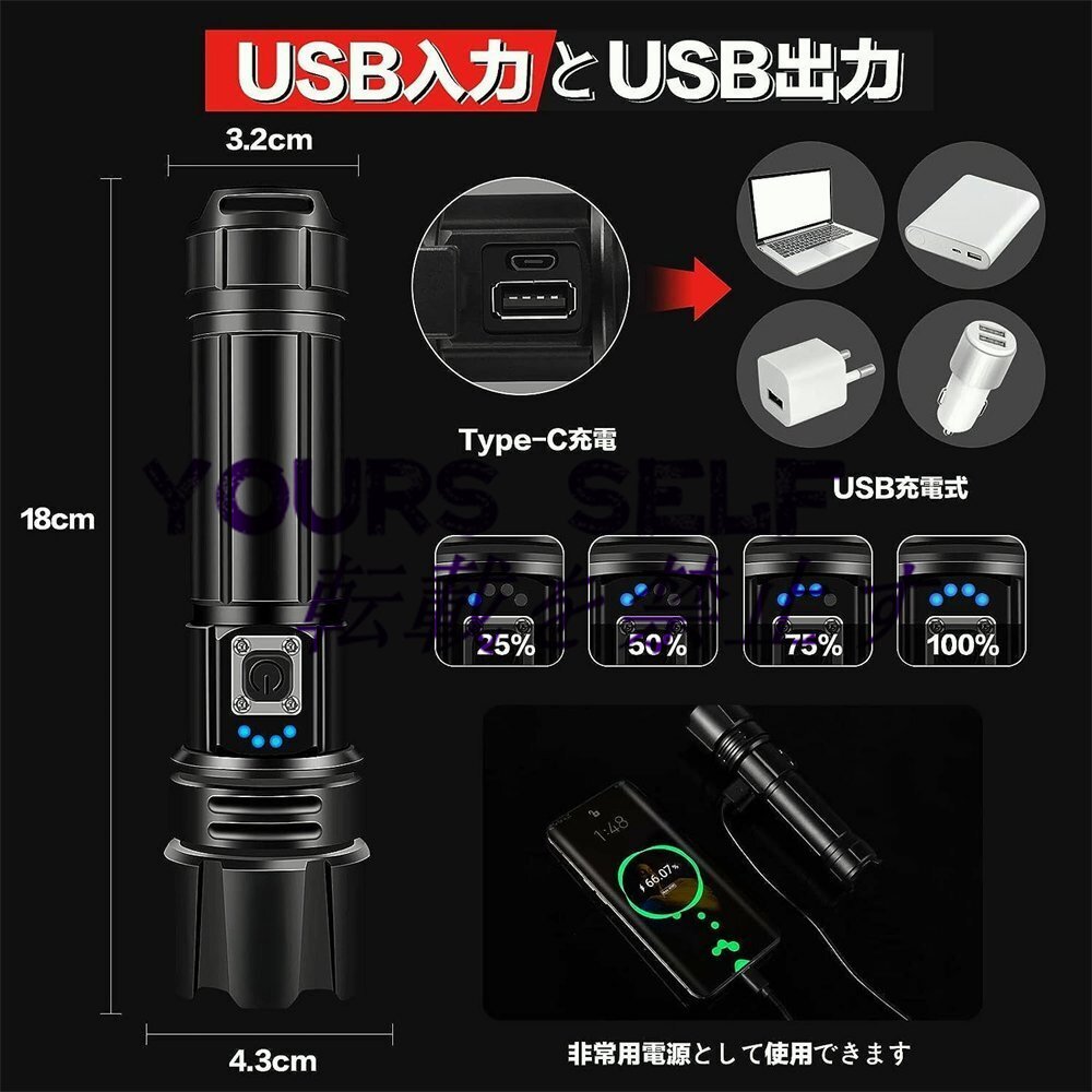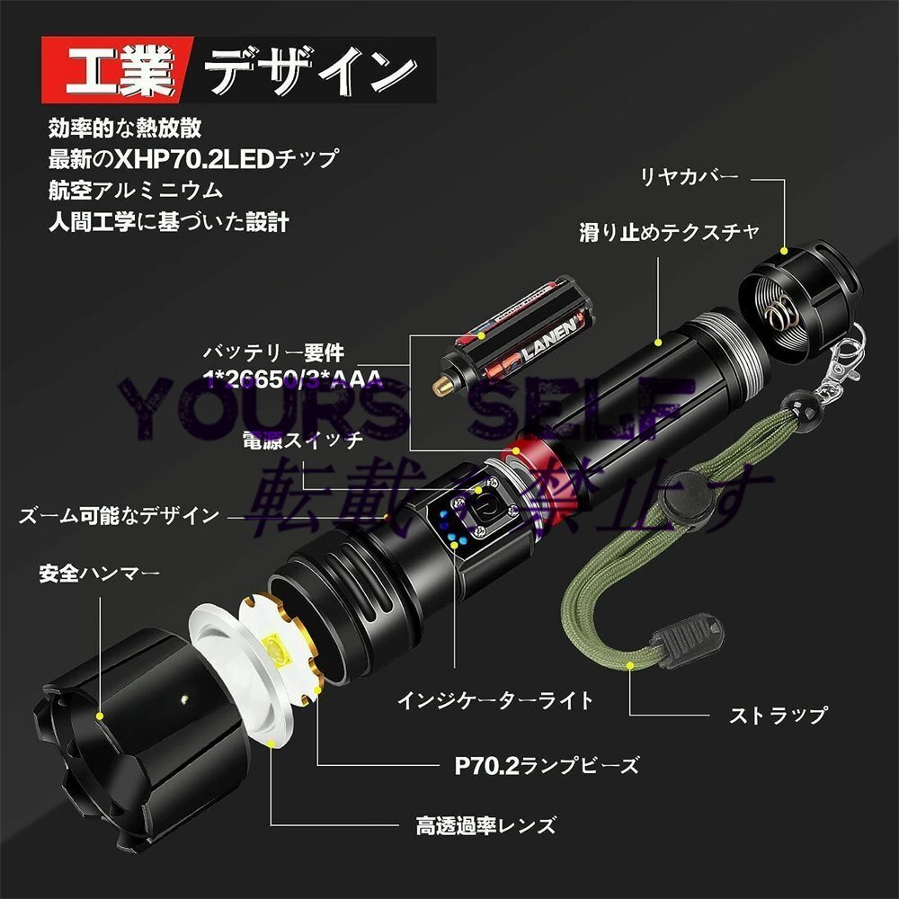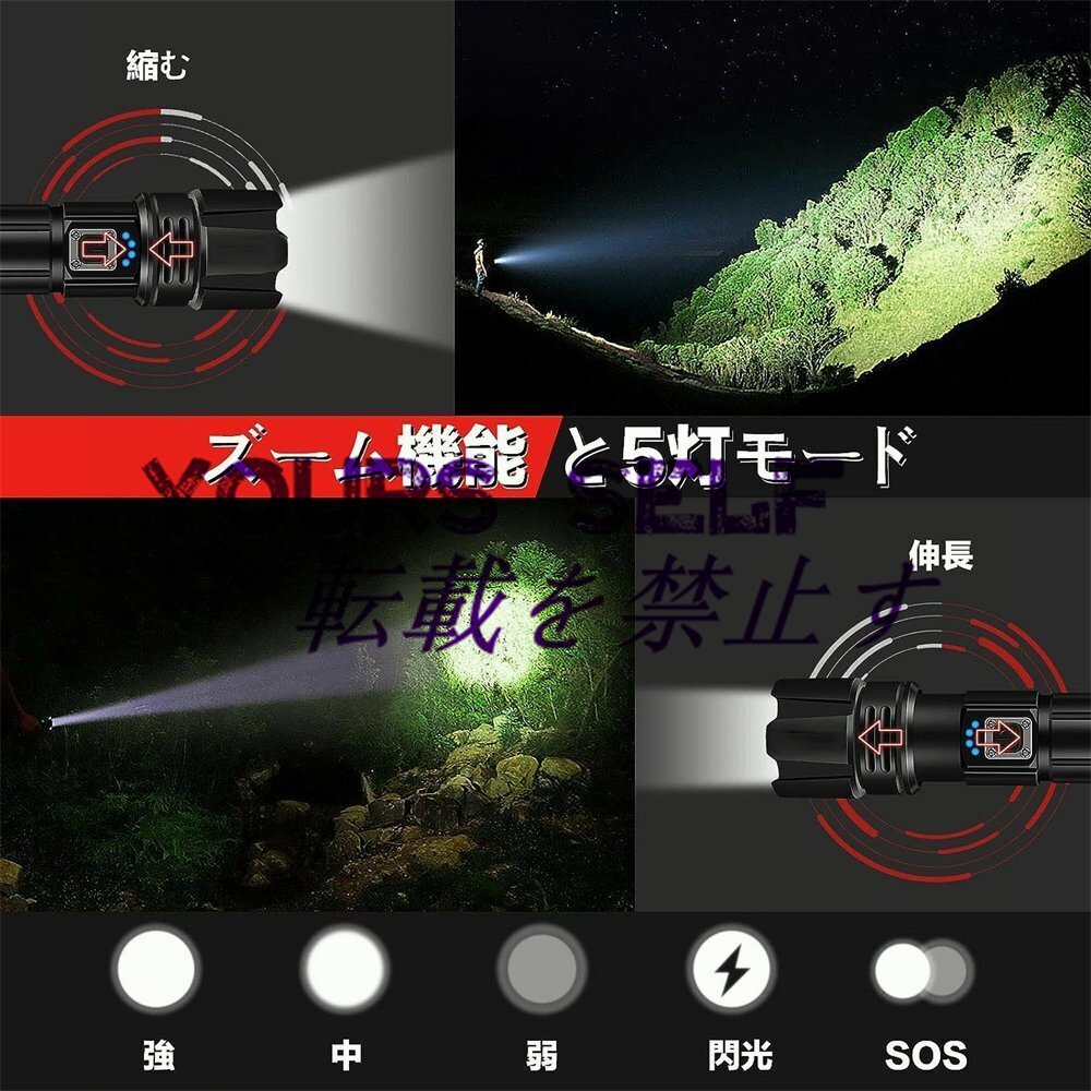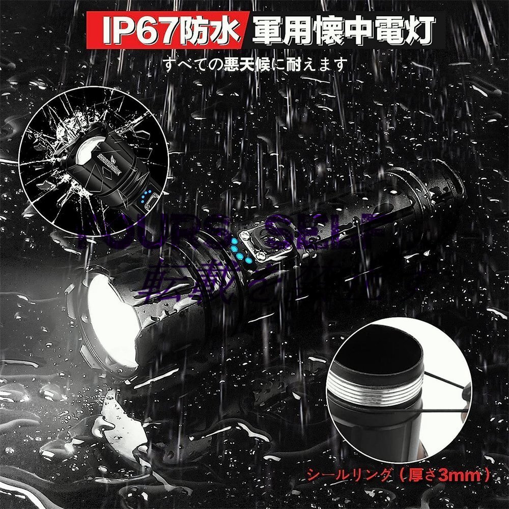 懐中電灯 led 軍用 超高輝度 20000ルーメン 充電式 ハンディライト XHP70.2 電池式 IP67防水 5モード ズーム調整可能 防災夜釣り/地震/災害