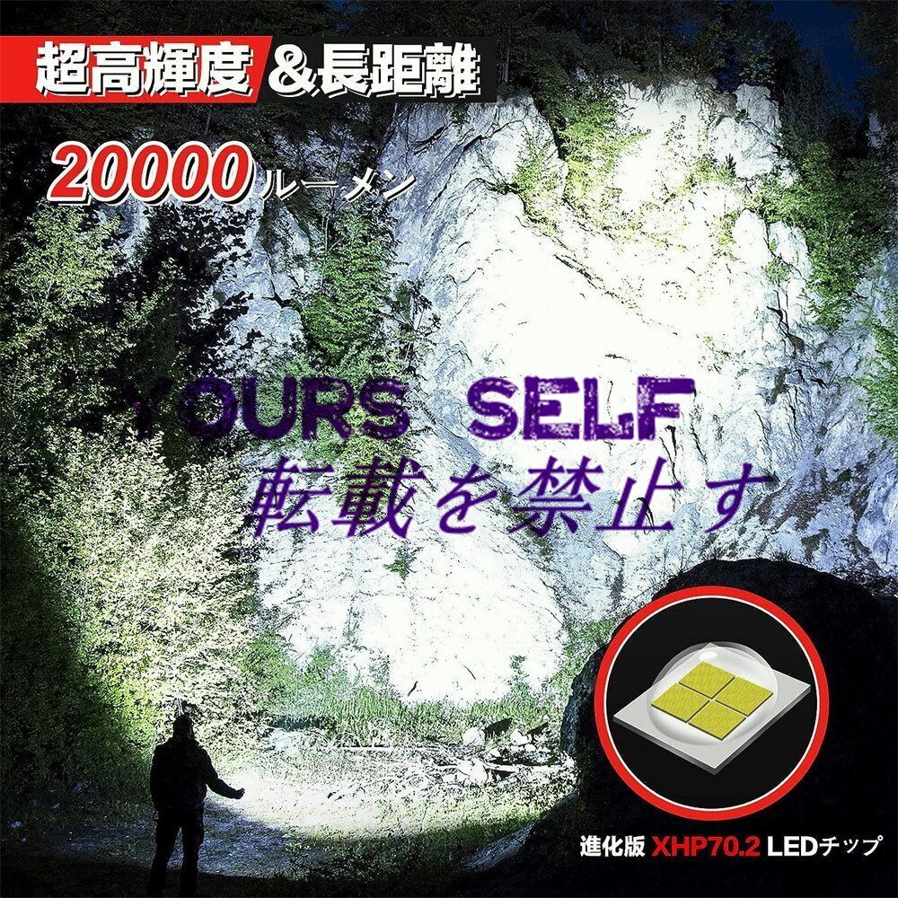 進化版!20000ルーメン かいちゅうでんとう led 強力 懐中電灯は最新のアップグレードされたXHP70.2LEDチップを搭載するので、通常のLED懐中電灯の10倍の超強力ライトを実現できます。