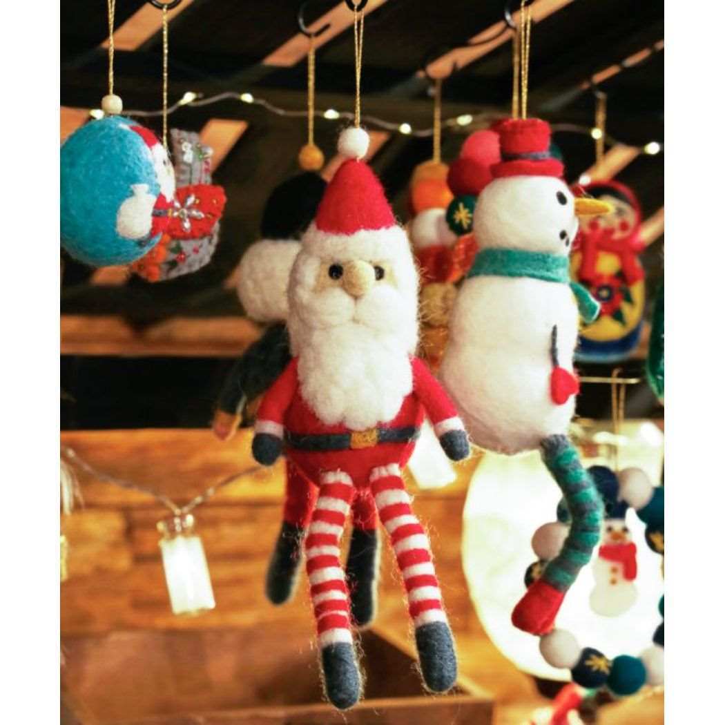 クリスマスツリーに飾り付けたり、インテリアにも クリスマスにぴったりのかわいい雑貨シリーズこちらはテーブルや棚の端にちょこんと座らせて、なんとも癒されるフェルトオーナメント足にワイヤーが入っているので好きな方向に曲げられます一点一点手作りのため、サイズや表情の出方に個体差がございますほかにも色々かわいい雑貨があるので揃えてみてくださいサイズ:約60x240mm(紐:約50mm)