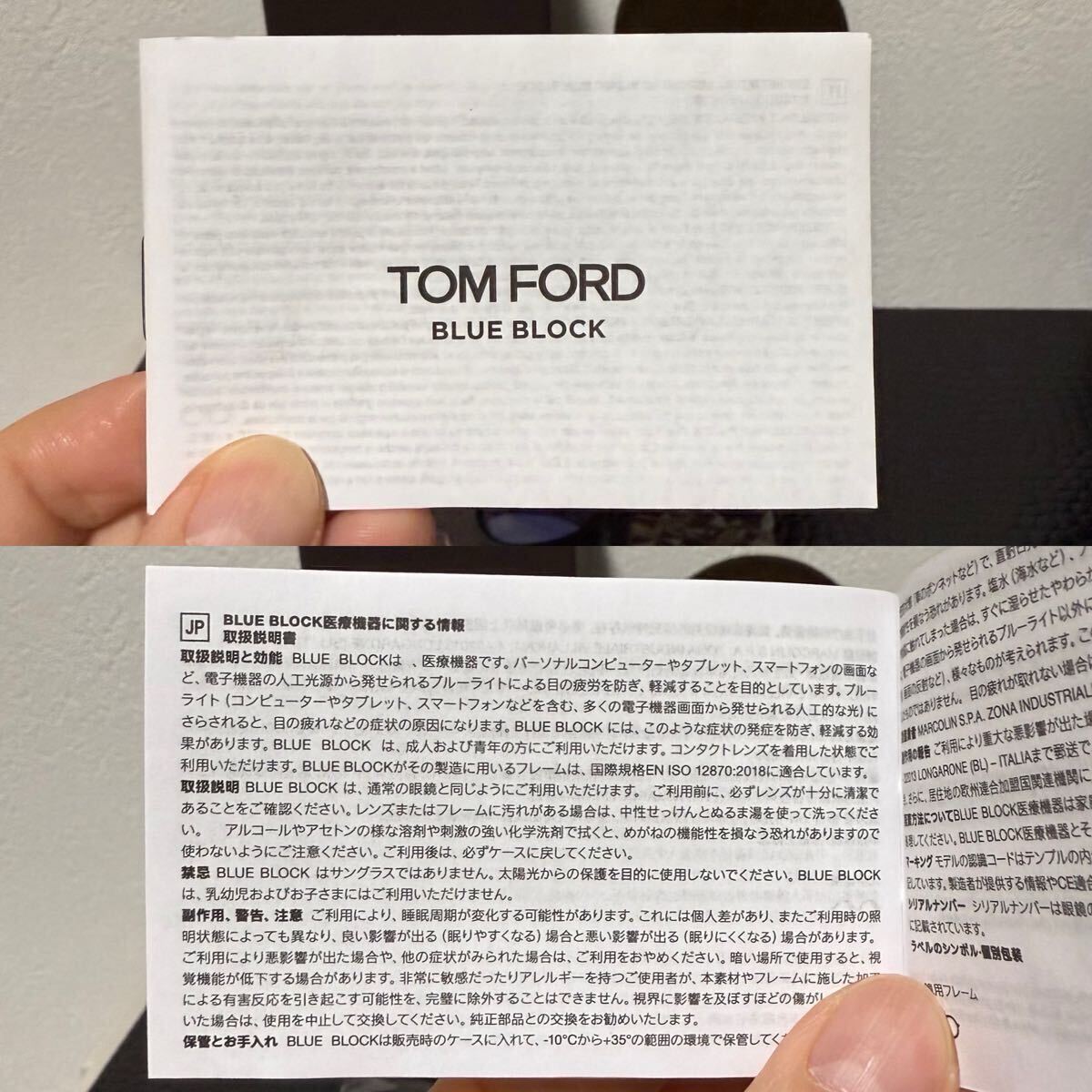 型番にBがついているとおり、トムフォードのブルーライトブラック純正レンズがついているモデルで、紫外線の保護&反射を防ぎブルーライトも除外します。