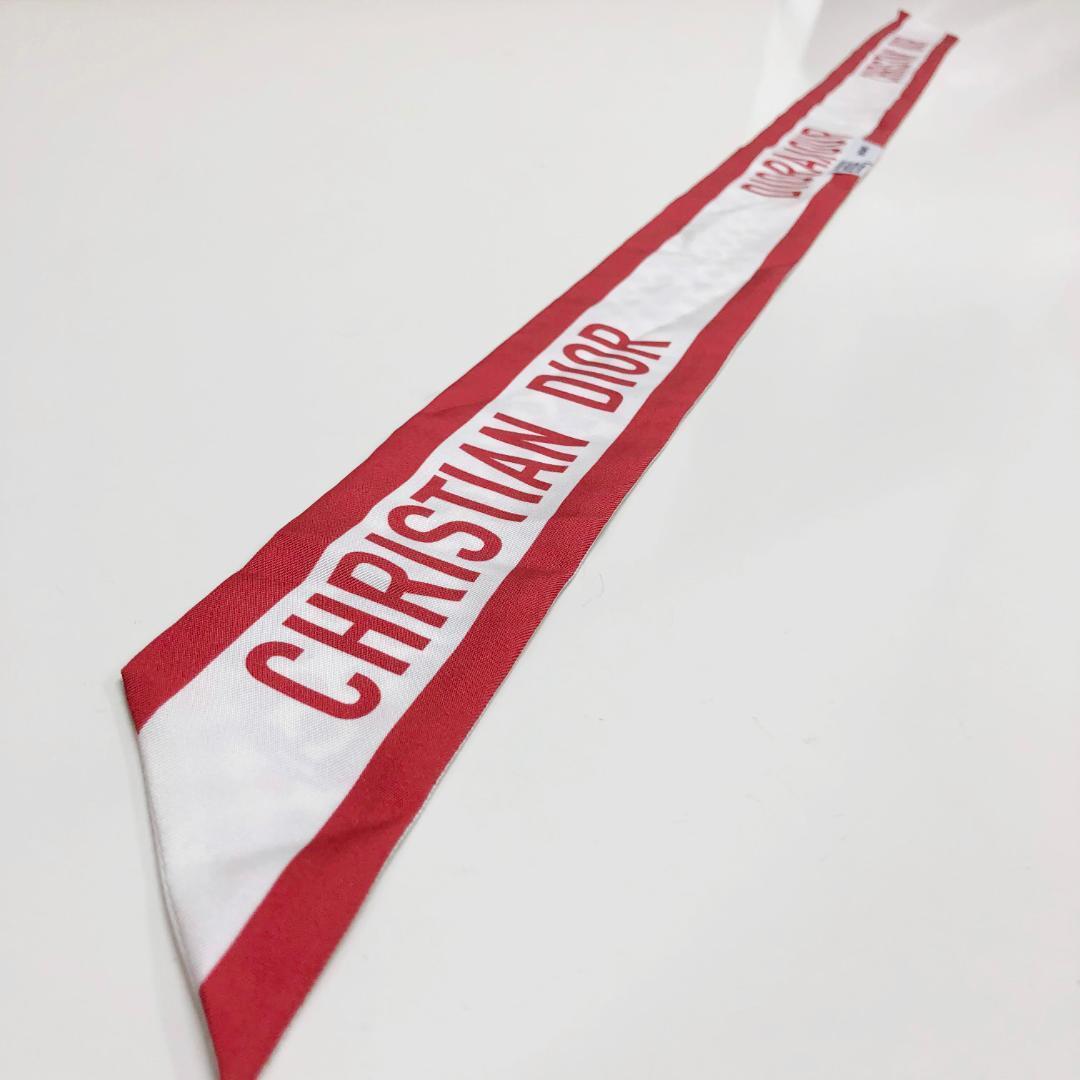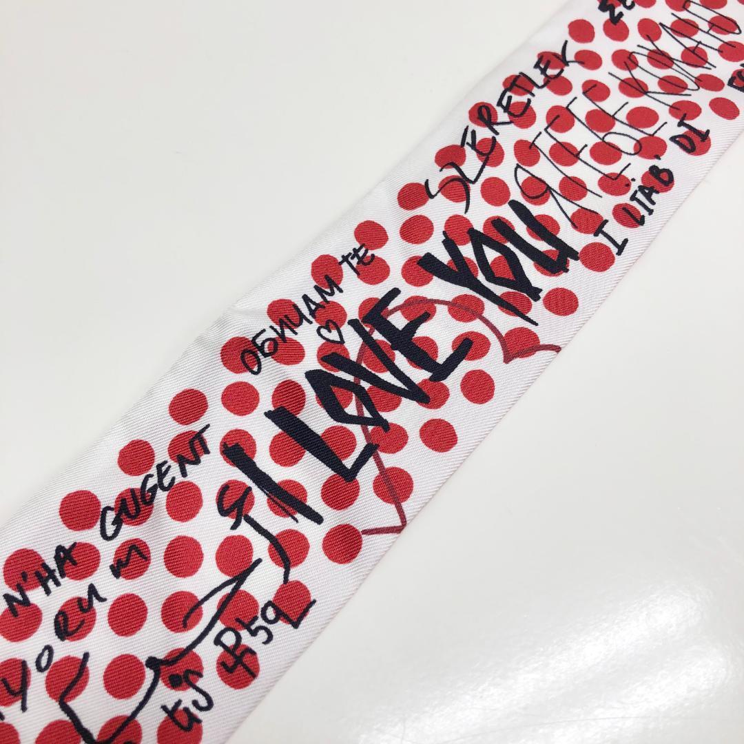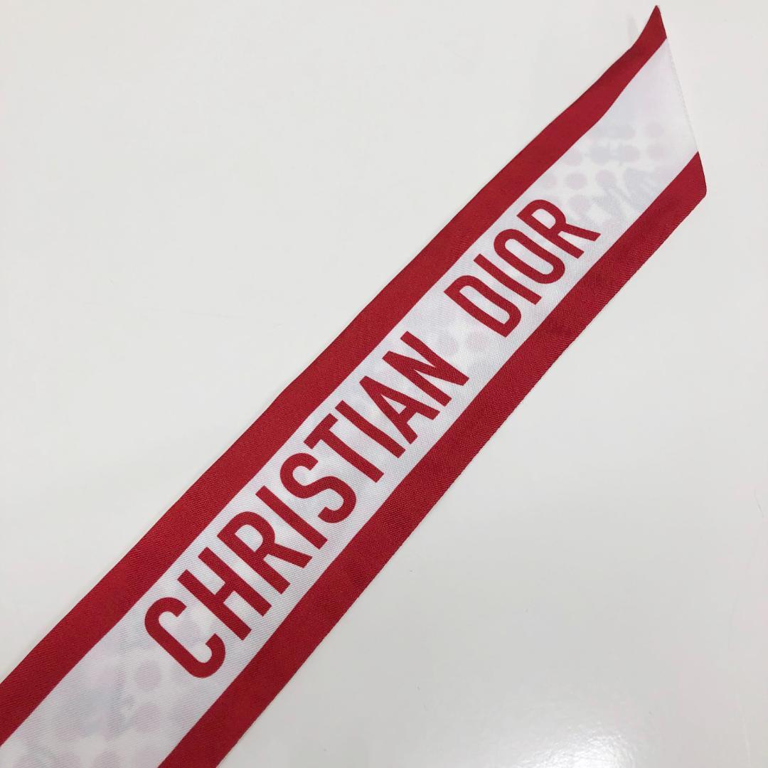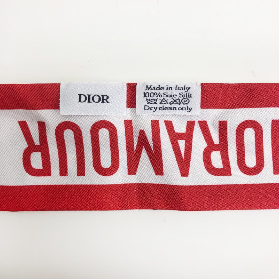 Christian Dior クリスチャン ディオール ミッツァ ドット スカーフ リボンスカーフ バンダナ レッド 赤 水玉 ドット柄 ポルカドット ハンドドロー 手書き文字 ラフ ロゴ シルク レディース iloveyou 愛 jetaime tiamo