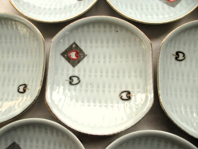 伊万里焼 印判手・錦絵 「5,4寸 小判型 刺身皿・9客揃」りんご地紋 会席道具 日本製