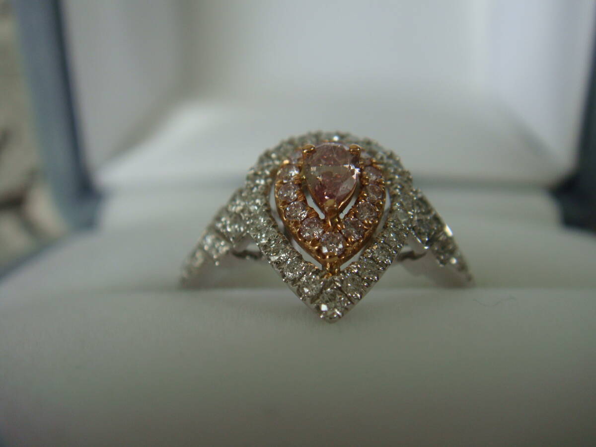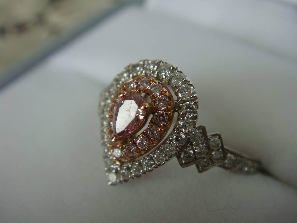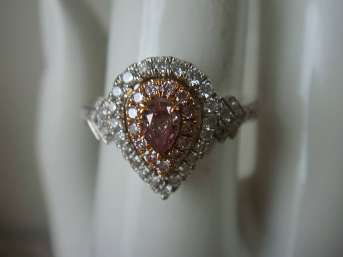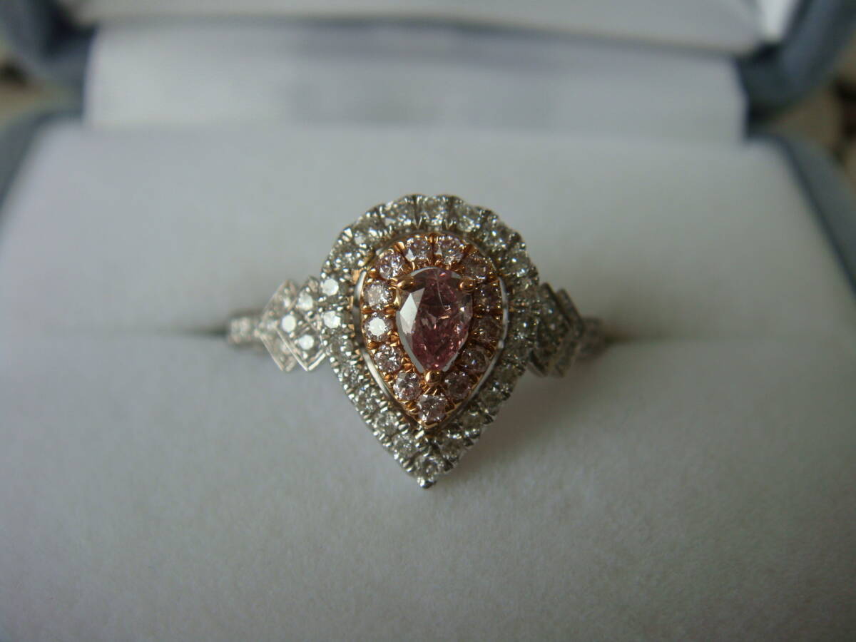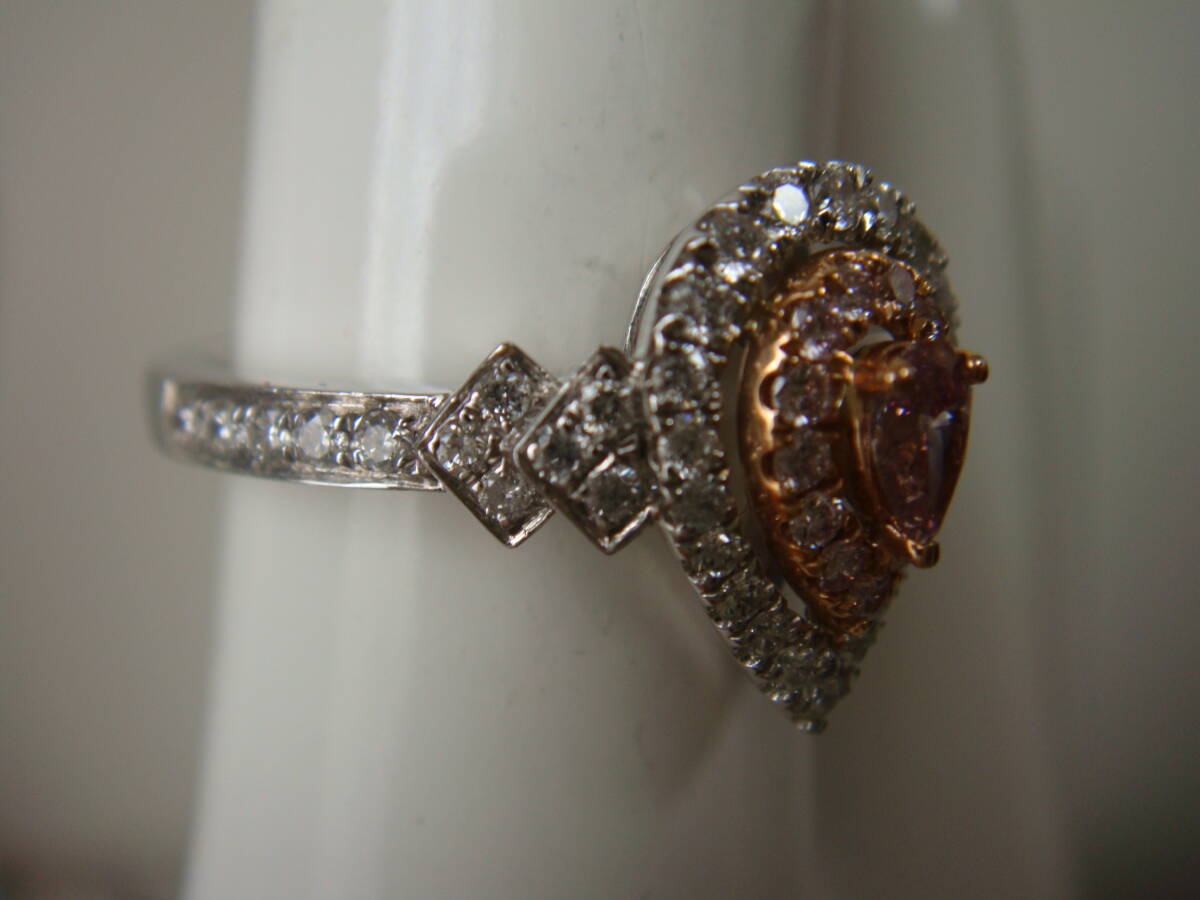 ピンクダイヤモンドの爪の部分は金色ですので18金と思われます。