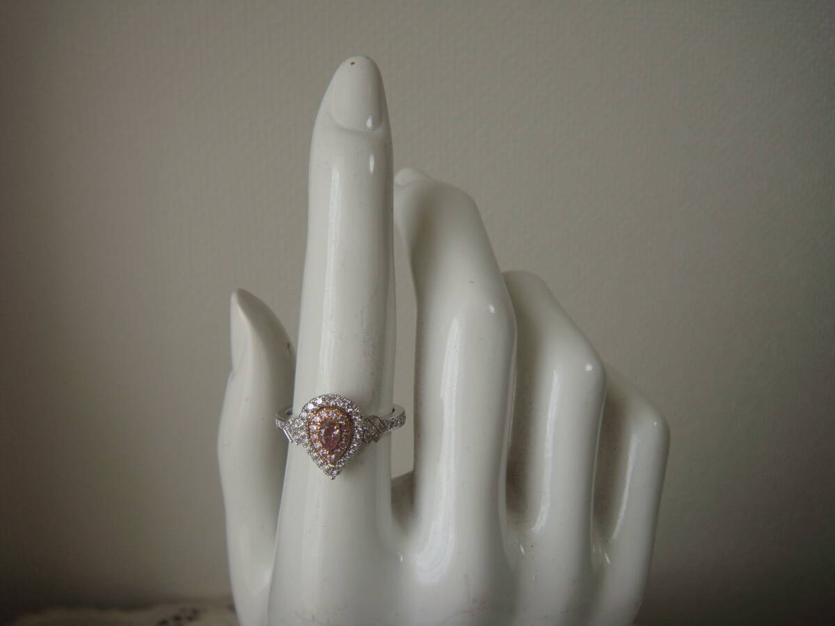 ピンクダイヤモンドリングです。サイズは約12です。プラチナ製です。Pt900の刻印入り。