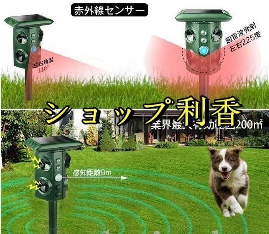 動物撃退器 超音波 進化版 害獣対策 ソーラー充電式 防水 IPX4防水 イノシシ対 策 猫よけ グッズ 犬 野良猫 猫退治 鳥獣対策 猫除け 鳥除け