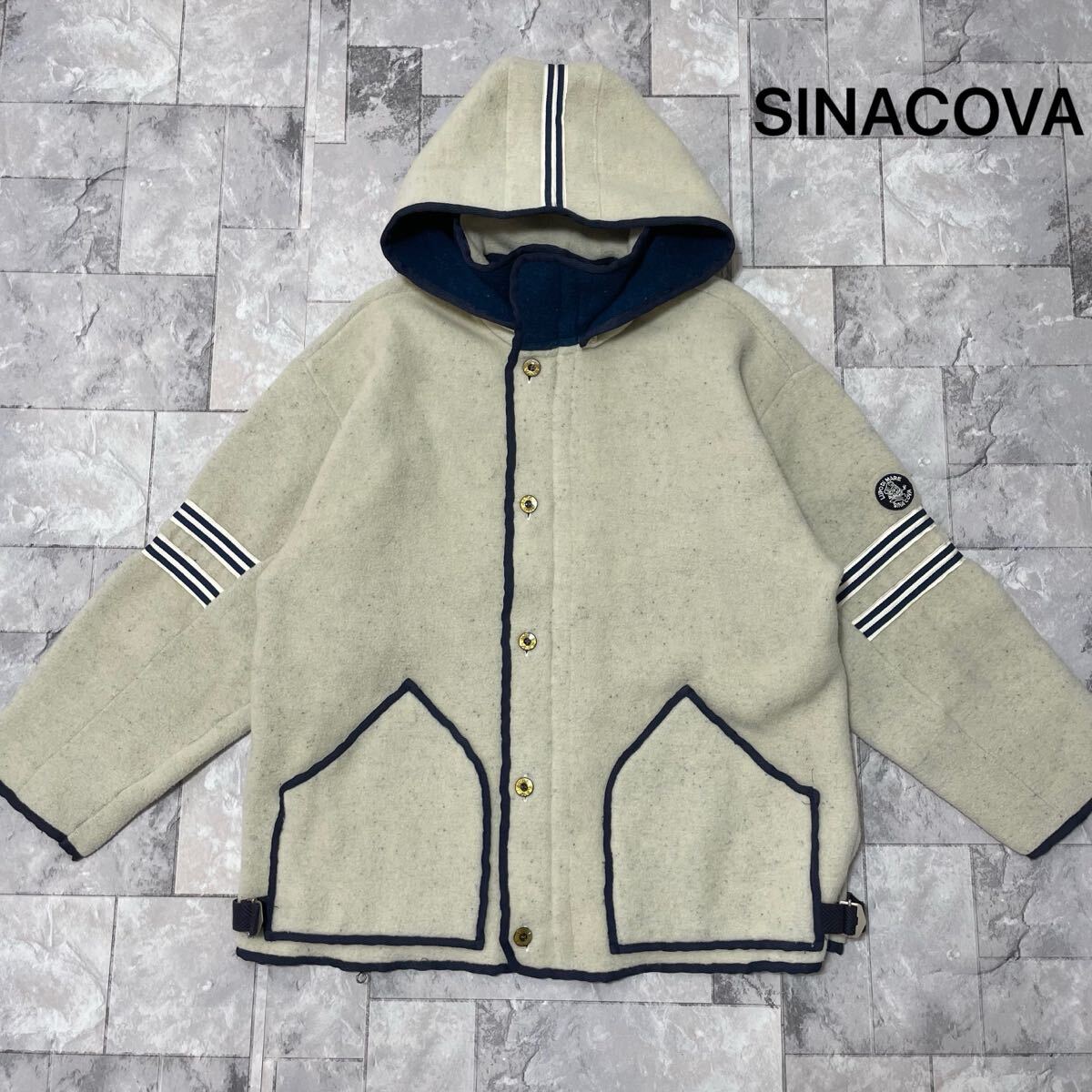 SINACOVA シナコバ フリースコート ジャケット ジップアップ フード取り外し可 ワッペン 裏地フリース ホワイト クリーム サイズL 玉SS2920