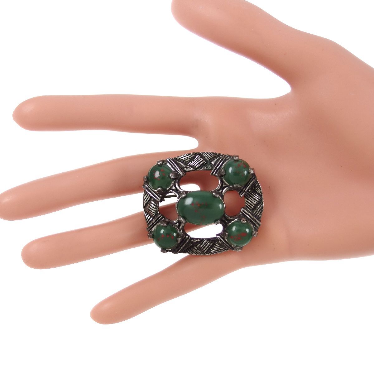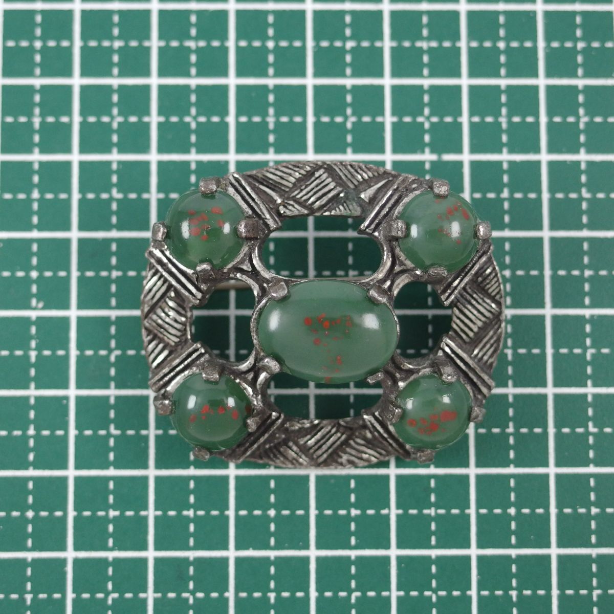 UK2972◆【MIRACLE】◆ 5粒のグリーン系カボションストーン 色石 ケルト 英国 イギリス ミラクル ◆ ヴィンテージブローチ ◆