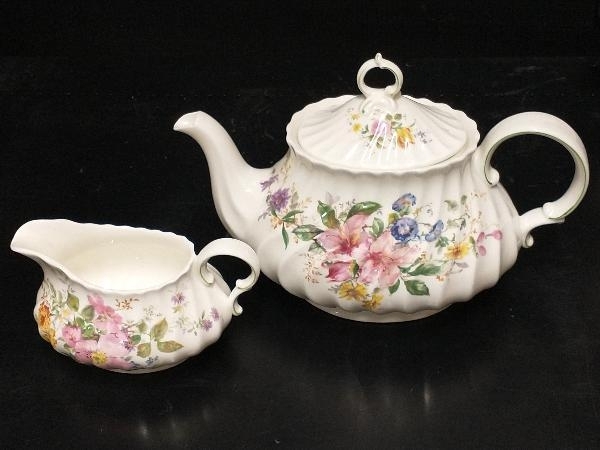 ・サイズ ティーポット 高さ約12cm(約16.5cmフタ含む ) ミルクポット 約8cm ・ミルクポットにヒビあり。 ・箱無し。本体のみ。 ・底部分に汚れあり。 |
