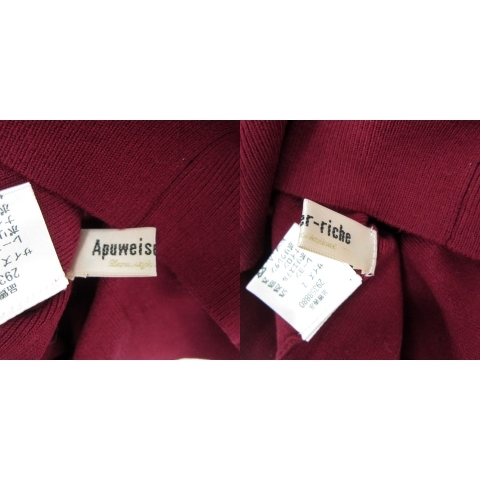 アプワイザーリッシェ Apuweiser-riche カーディガン ミドル丈 Vネック 無地 2 ボルドー /SY30 レディース