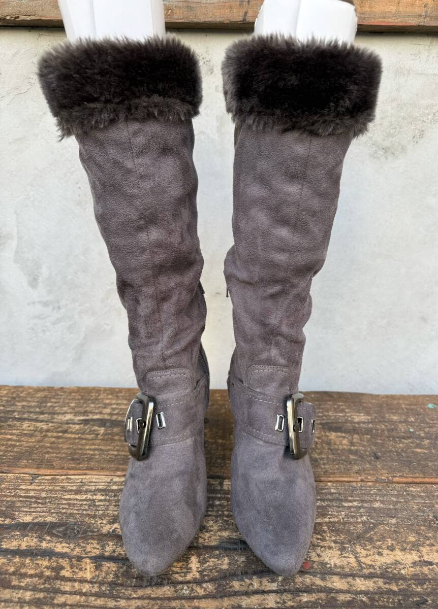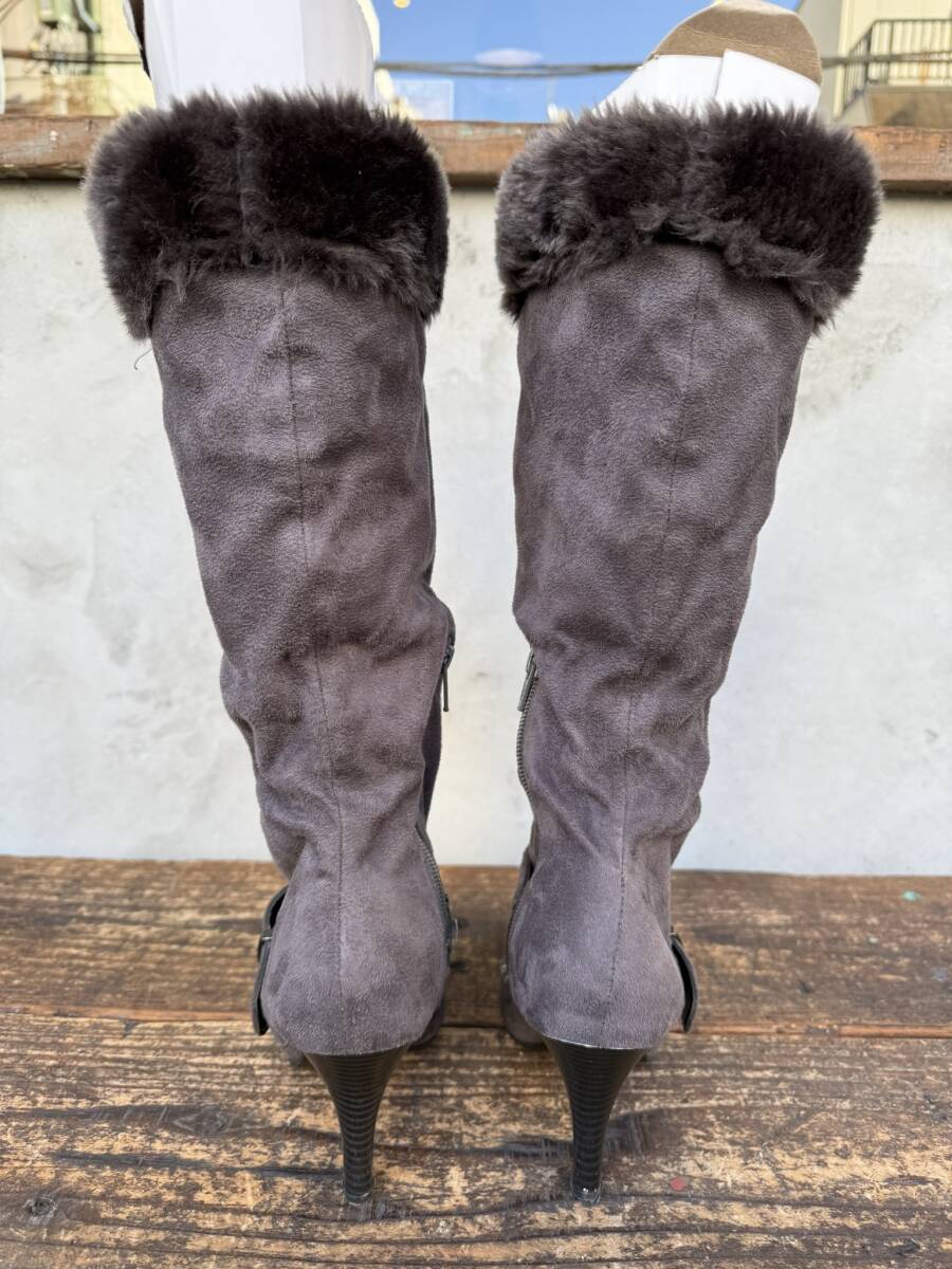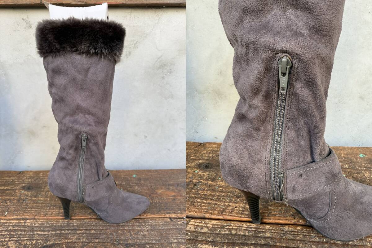 ★NUOVO★ヌオーボ★ホーキンス★ロング★ブーツ★スエード調★ボア★くつ★シューズ★チャコール★サイズL★レディース★