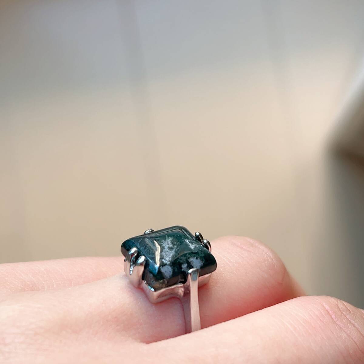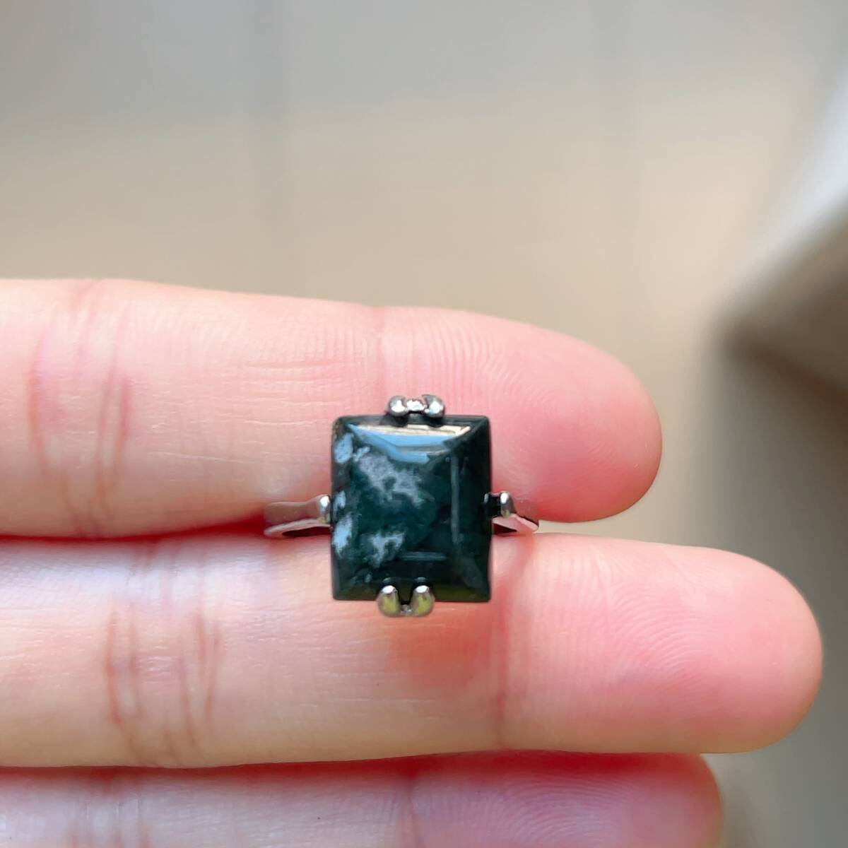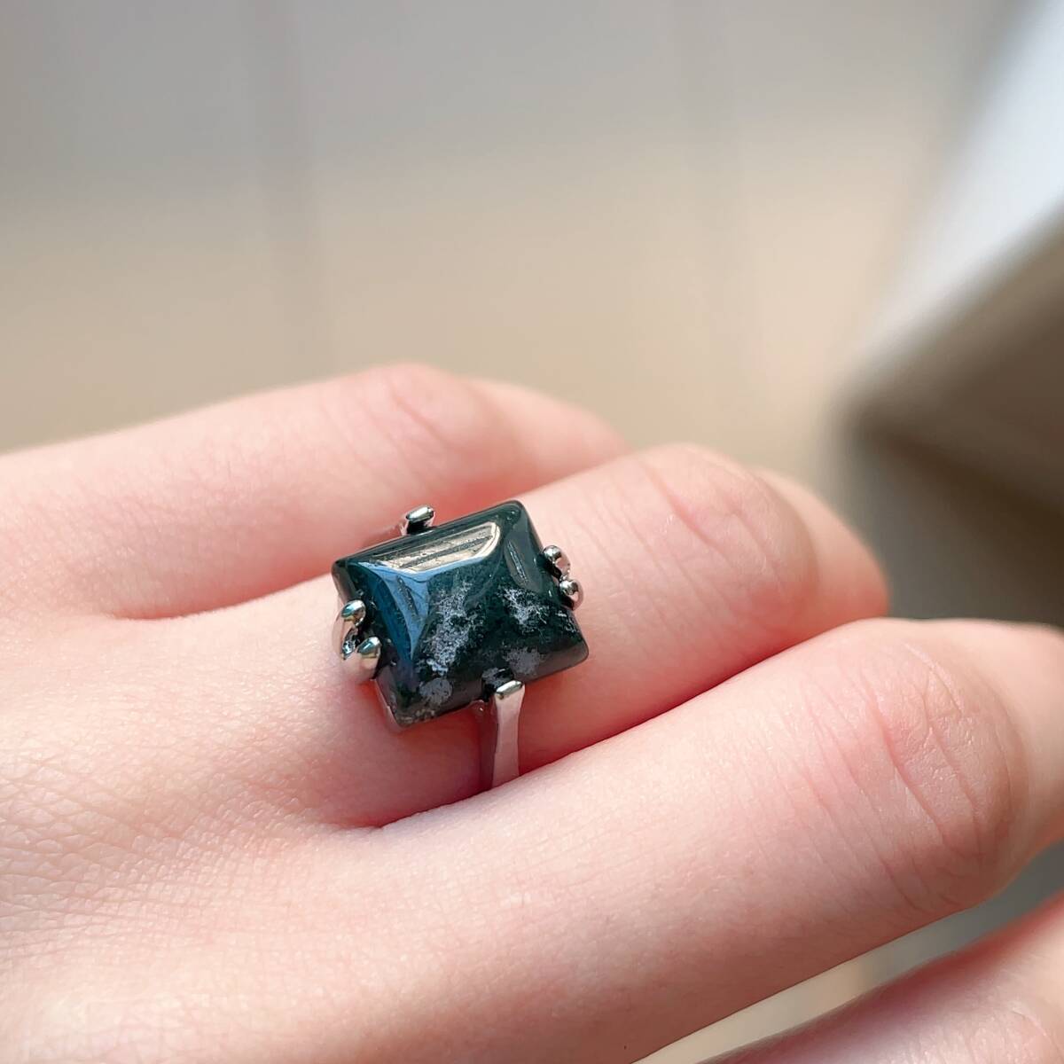 訳あり◇水草瑪瑙(モスアゲート)◇メノウ◇アゲート◇10号◇リング◇指輪◇天然石◇パワーストーン◇巾着袋付き◇プレゼントにも035R1163