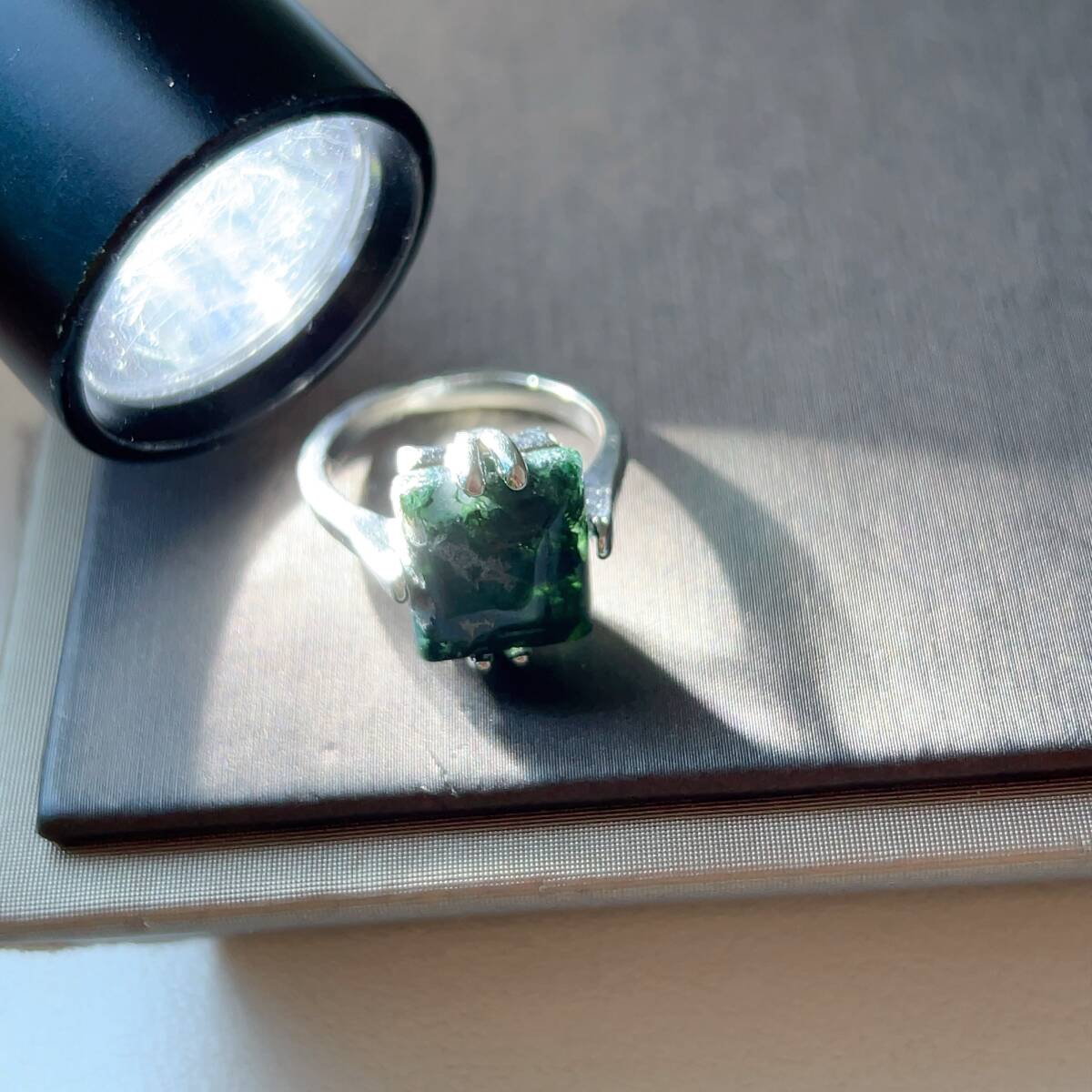 モスアゲートは、瑪瑙の中に緑色や赤色、黒色などの内包物が入り、それが苔や木の枝のような模様に見えるのが特徴の石です。