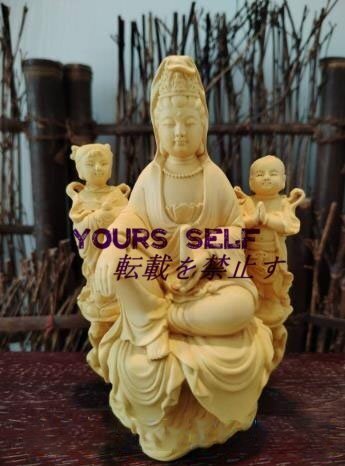 緑起物 仏像 観音菩薩 仏教工芸品 童子 童女 観音像 観音菩薩像 観音様 木造木彫 飾り置物 供養品 風水 祈る