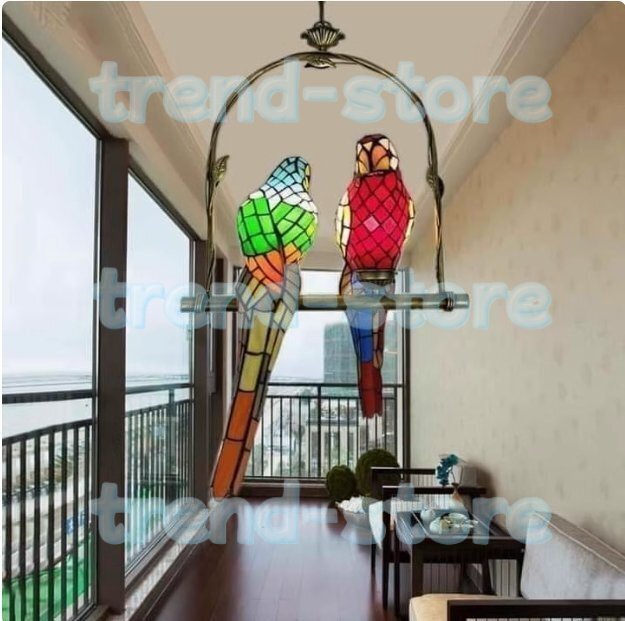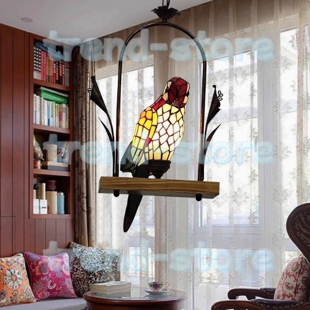 ステンドランプ ステンドグラス 鸚鵡 ペンダントライト オウム 吊り下げ照明 ティファニー 装飾品 照明