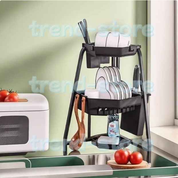 多機能キッチン水切りラック:食器も調理器具もすべてキレイに乾かします。この食器水切りラックには、色々な物を置くことができます:ボウル/皿、野菜/果物、調理用ナイフ/まな板/スプーン&フォーク/洗剤(ホルダー)、おたま/フライ返し/ふきん(フック)大きなキッチンだけでなく小さなキッチンにもピッタリなキッチン収納オーガナイザー兼スペースセーバー。