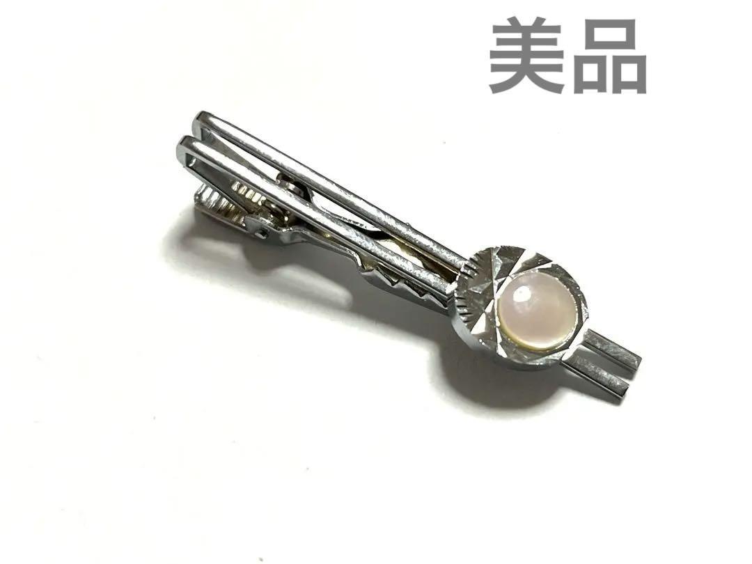 美品 白蝶貝 ラウンドシェル付き 彫刻あり シルバー ネクタイピン 高級感