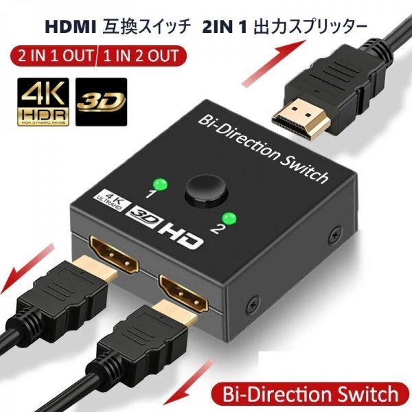 「送料無料」HDMI互換スイッチ 2-IN- 1 出力スプリッター ディスプレー高画質 4K 対応 分配切替セレクター 3ポート簡単安全便利