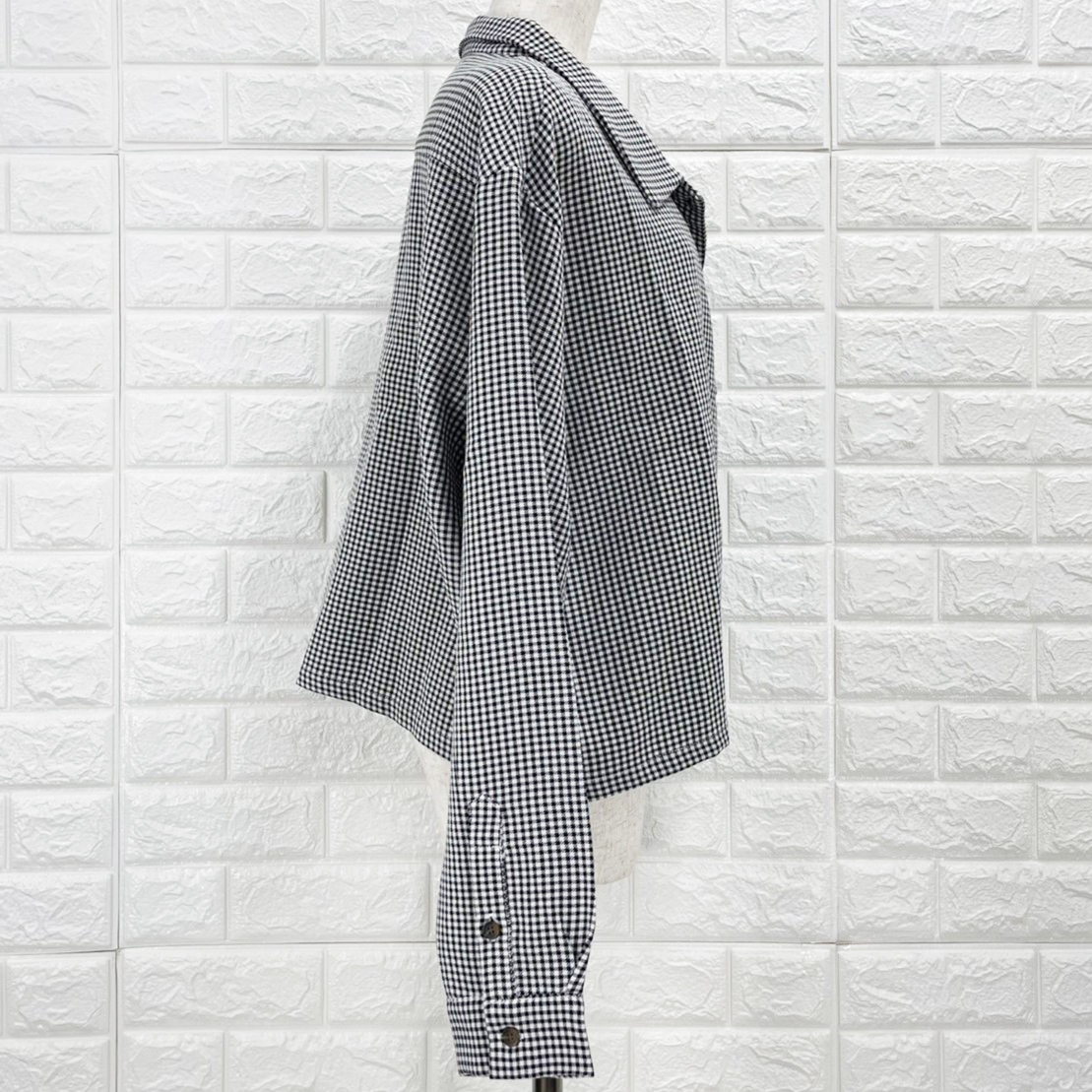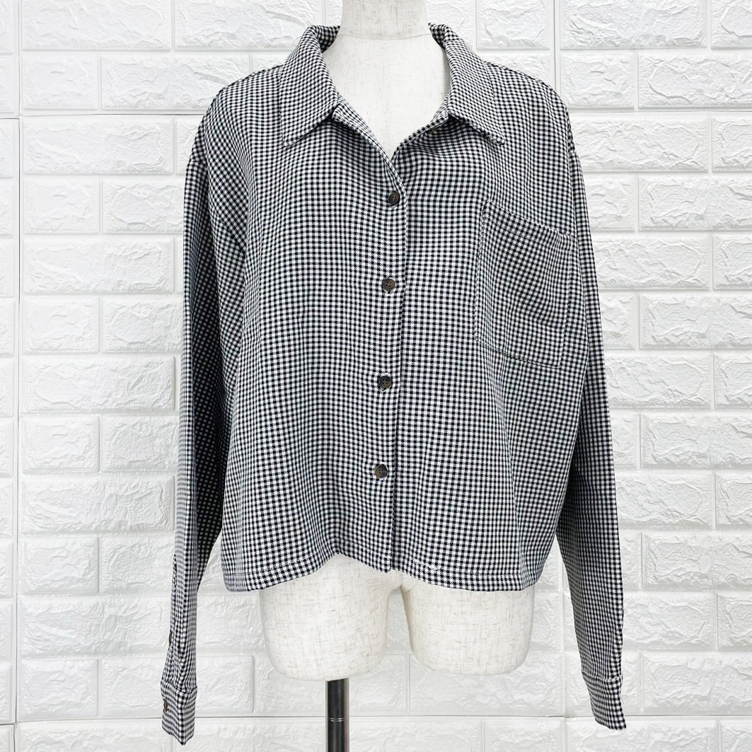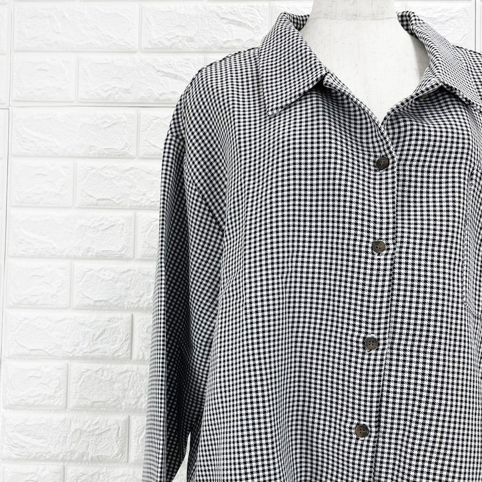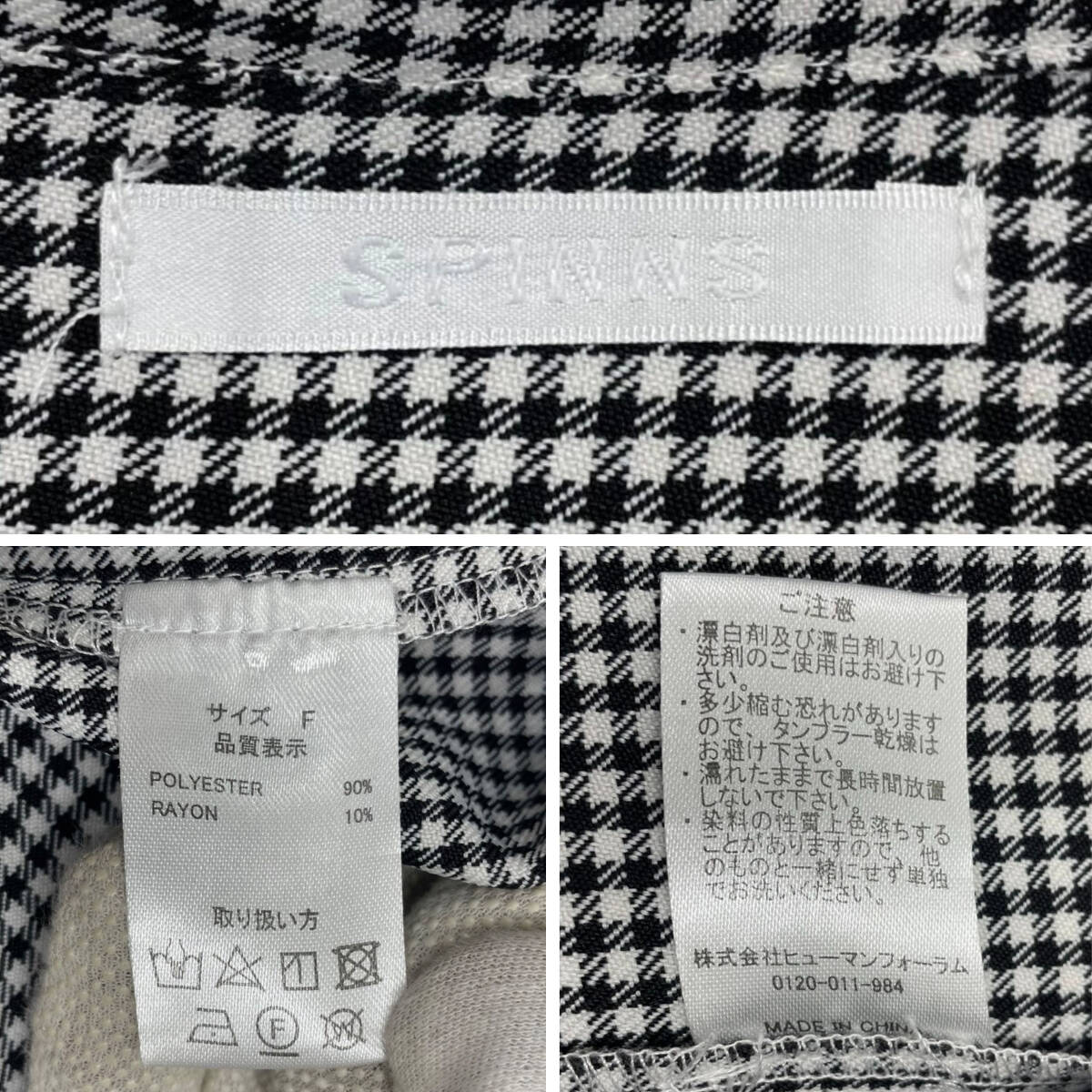 【A3079】SPINNS スピンズ シャツ ブラウス レディース 長袖 ショート丈 千鳥チェック ブラック×ホワイト モノトーン 秋冬 フリーサイズ