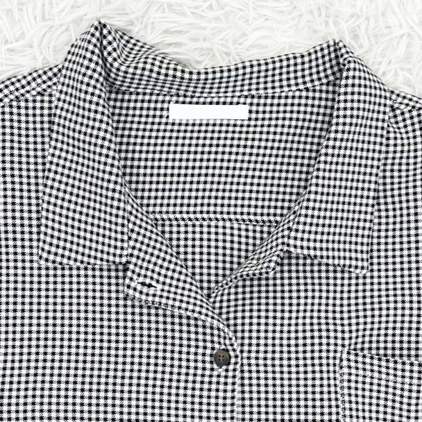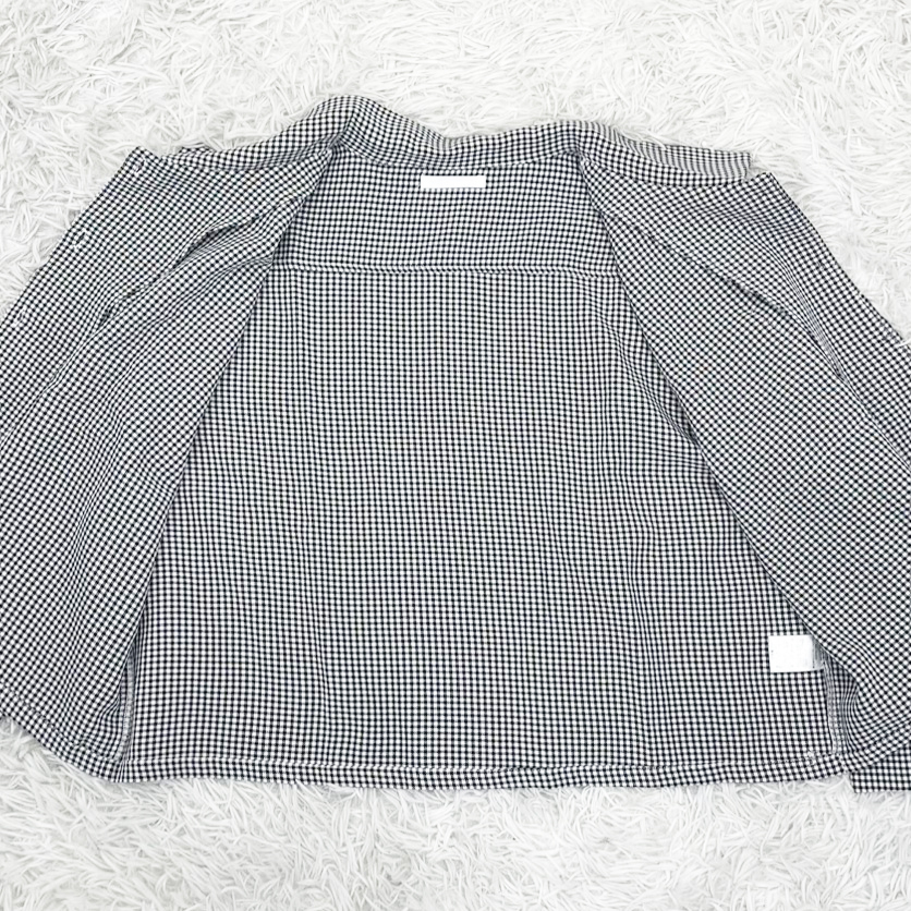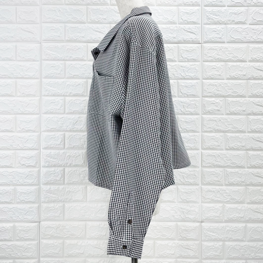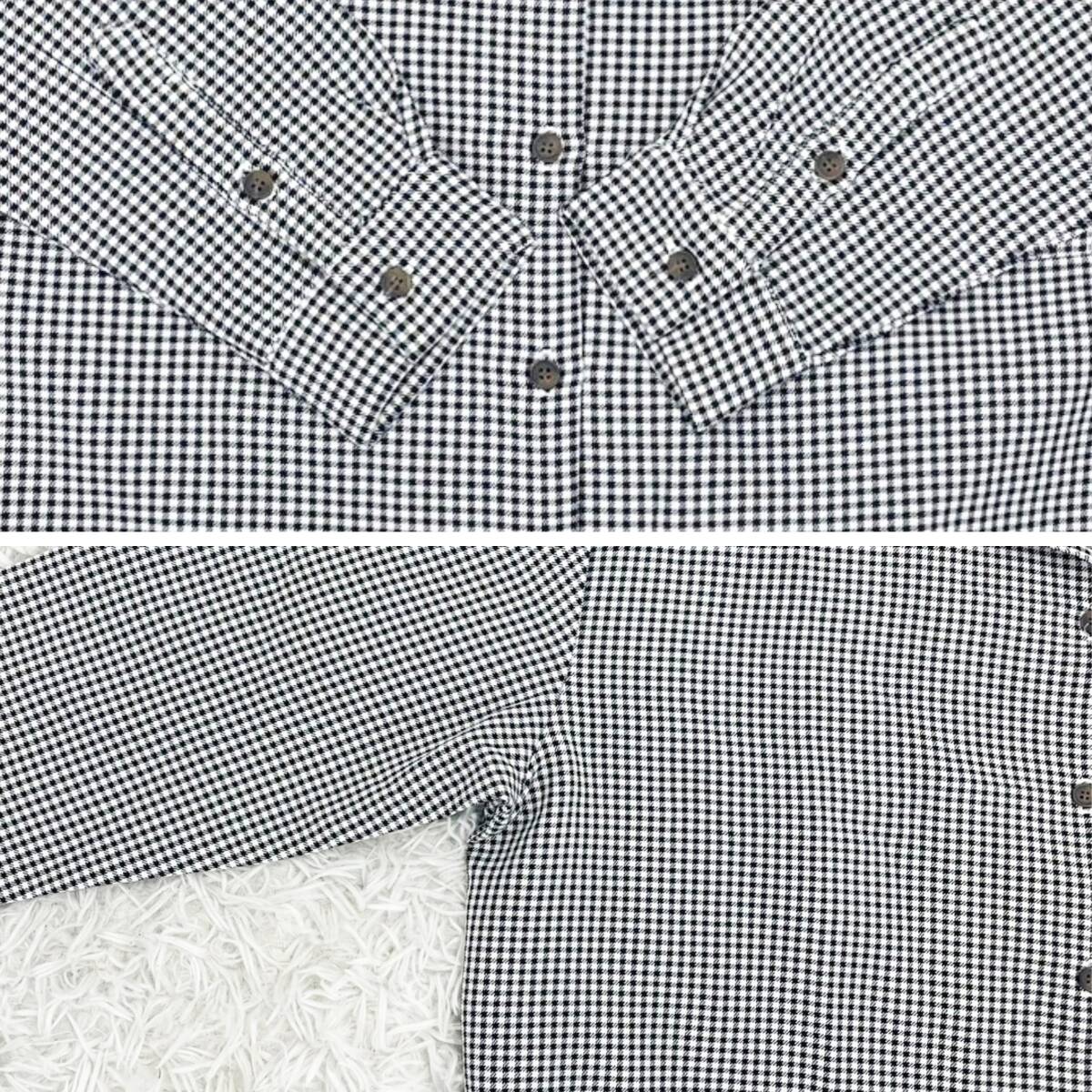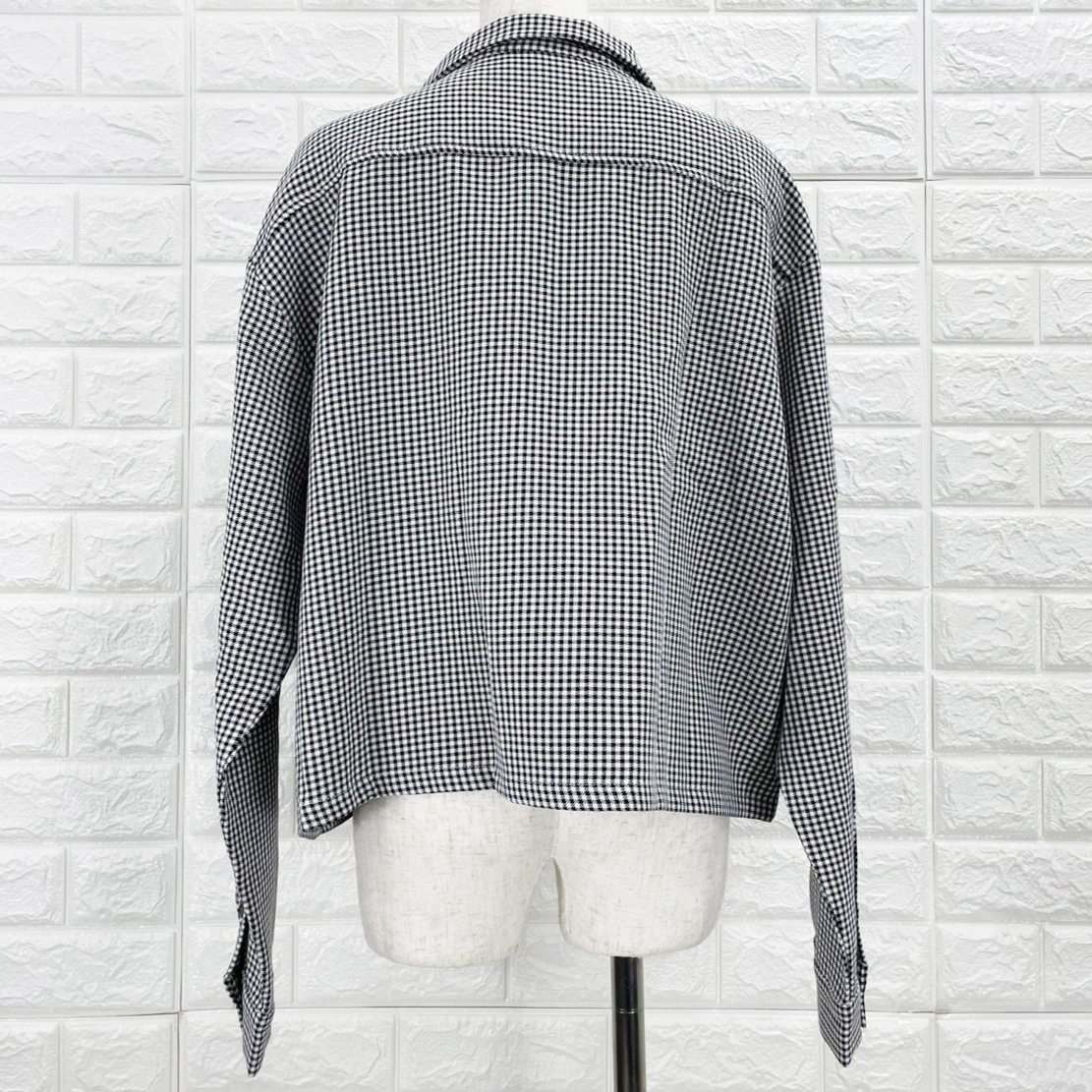 【A3079】SPINNS スピンズ シャツ ブラウス レディース 長袖 ショート丈 千鳥チェック ブラック×ホワイト モノトーン 秋冬 フリーサイズ