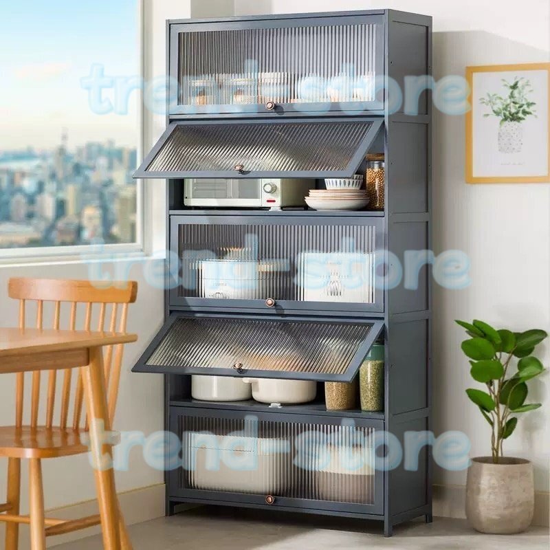 食器棚 スリム キッチン収納 隙間収納 竹製 食器収納 一人暮らし 大容量 扉付 防塵 キャビネット 調味料入れ キッチンカウンター 5層80cm