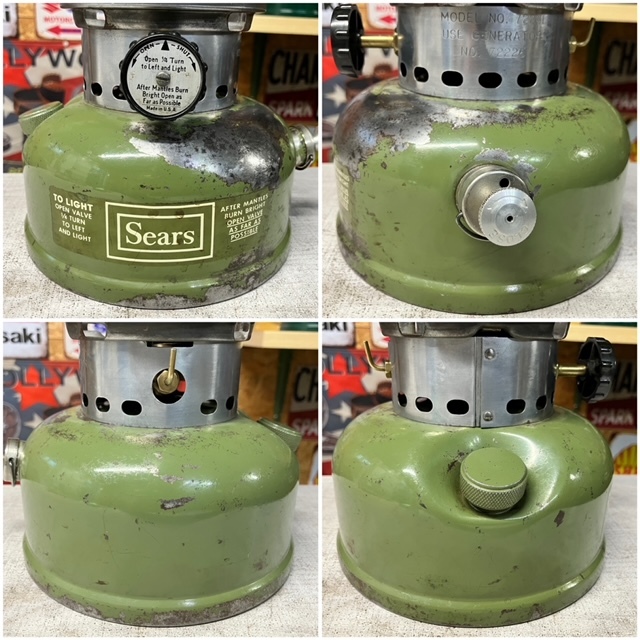 Colemanのランタンの魅力は、 美しさもさることながら、各部品の頑丈さと精度の高さと、 何と言ってもランタンとしての実用性の高さです。 どんなに古いランタンでもキチンとメンテをしてあげれば 必ず使えるようになります。 当店の商品は、出来る限りオリジナルの状態を 保つようにしています。 何十年も使い込まれたランタンには個体ごとに味があります。 そのヤレた感じを大切にするようにしています。 ただし、ランタンは道具であり使えなければ意味がありません。 可能な限り当時の部品を生かしつつ、必要に応じて 部品の清掃・交換をしてすべてのランタンについて 着火と灯火時間検査を実施し出品していきます。 是非ともコレクションの一つとして頂ければ有難いです。 誠意を持って良い商品を出品して参りますので 末永くよろしくお願いいたします。 ※当サイトにて販売している商品は、店舗や自社サイトでも 販売しております。 その為、サイトよりご注文を頂いた時点で稀に他で完売してしまい 欠品していまう可能性がございます。 在庫管理は、出来る限りリアルタイムな更新を心がけておりますが、 万一欠品の場合はご了承ください。 | |||||||||||||||||||||||