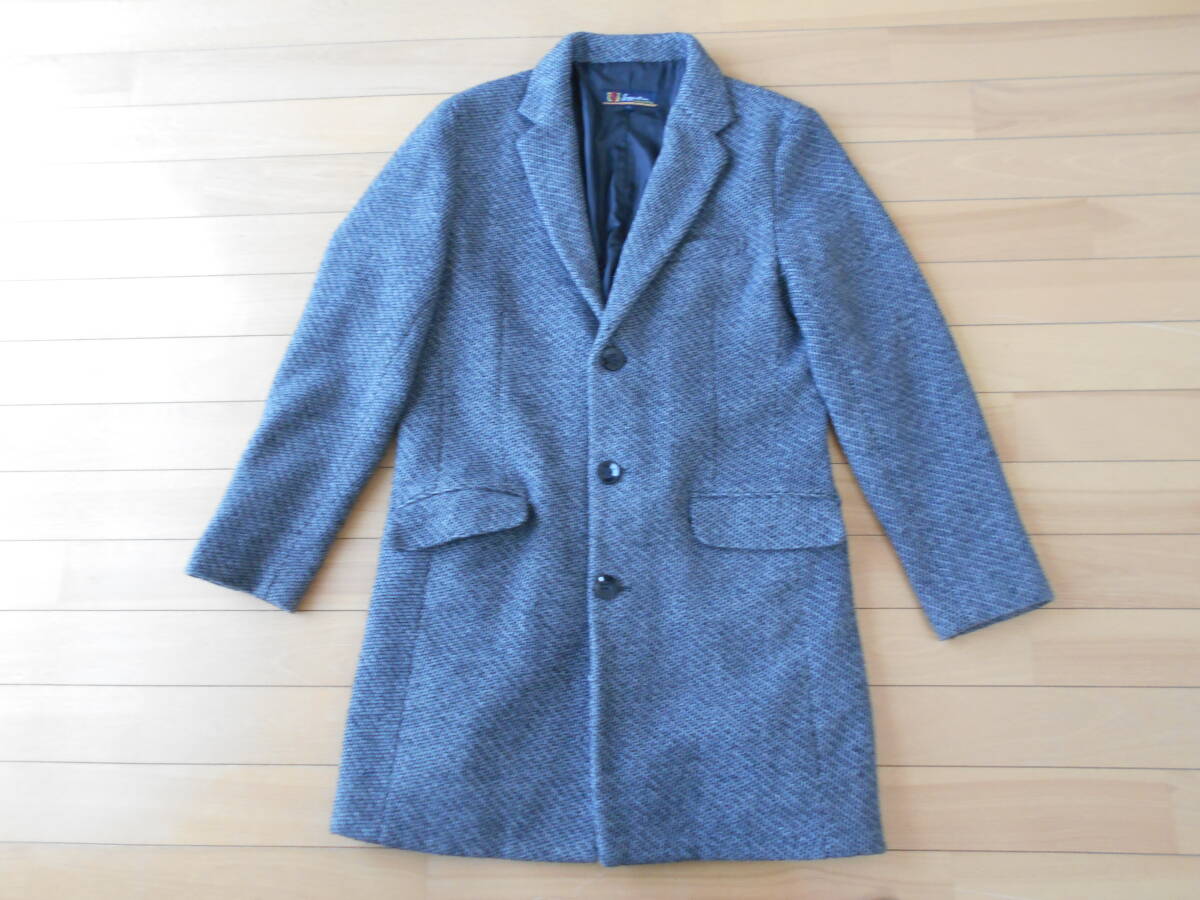 【特別価格】★Suggestion no.620167 ミックスツイード調 シングルブレスト チェスターコート ★黒灰sizeL★