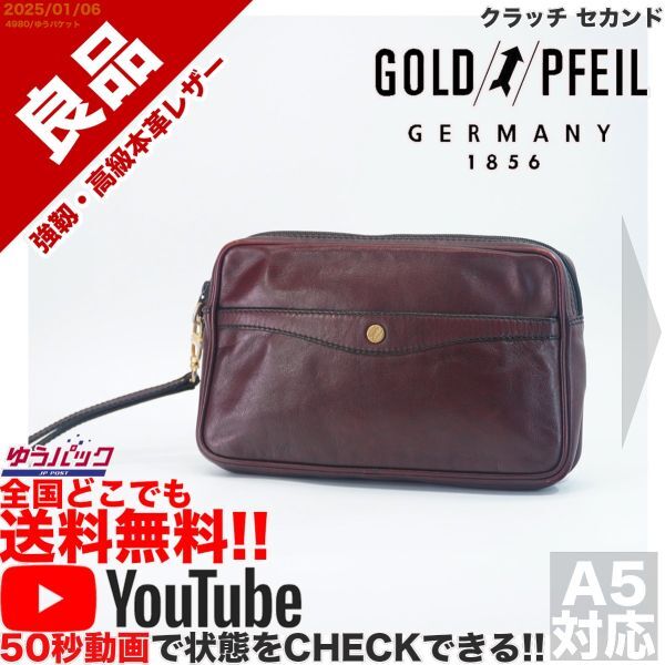 送料無料 即決 YouTube動画アリ 定価30000円 良品 ゴールドファイル GOLD PFEIL クラッチ セカンド レザー バッグ