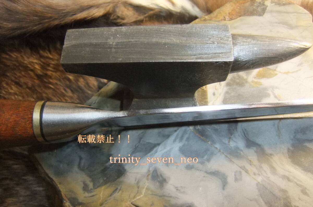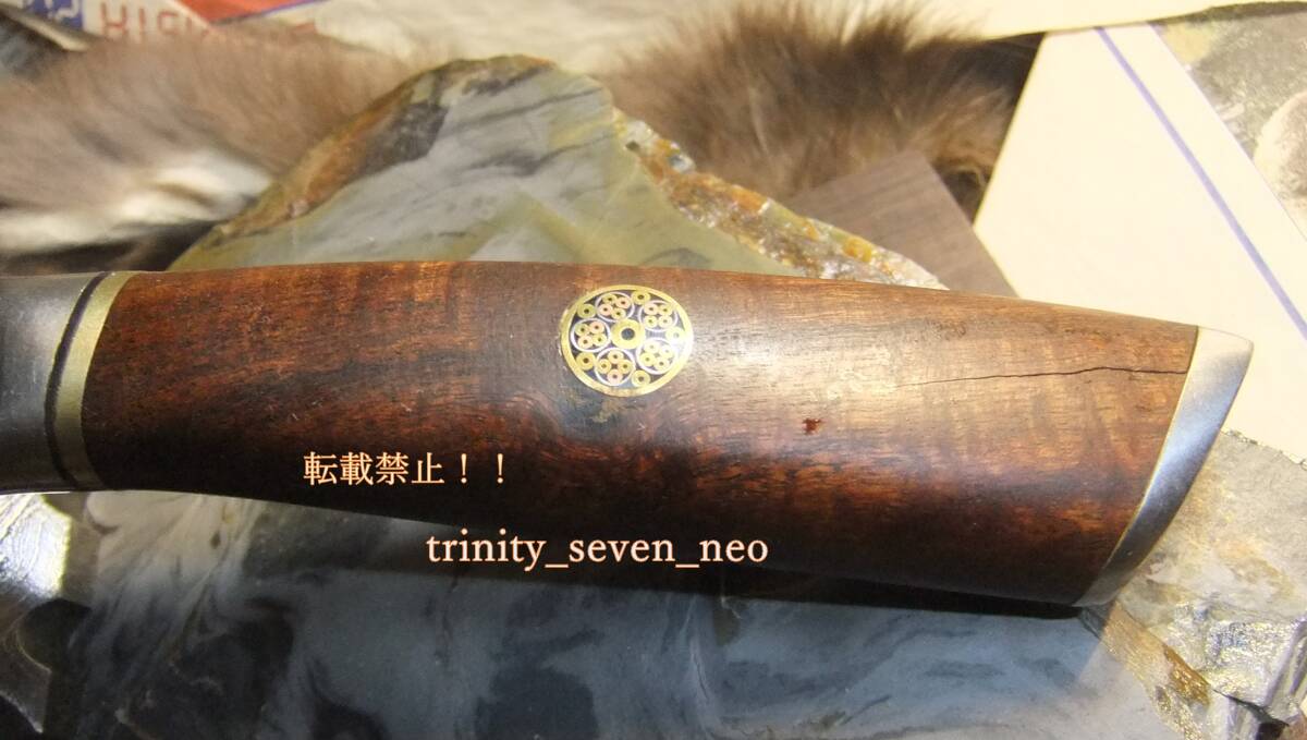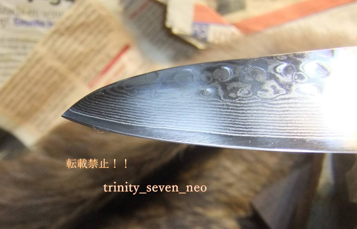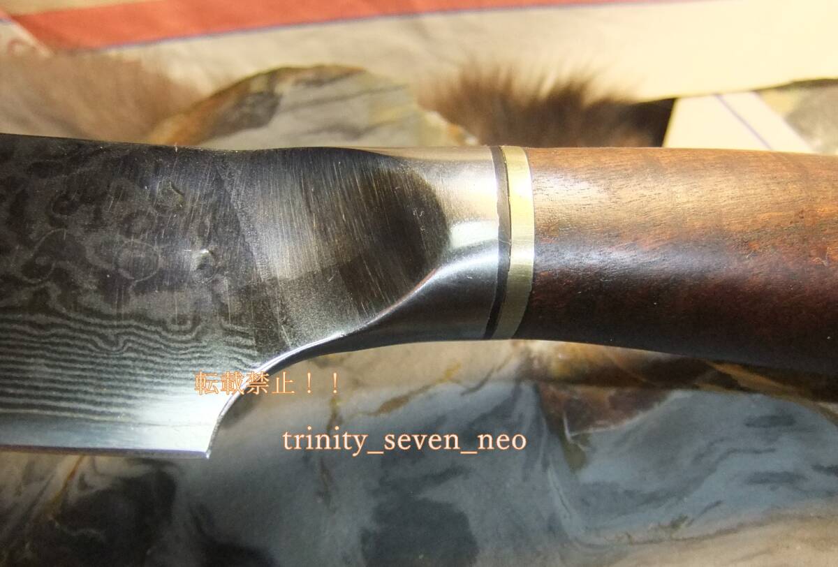 | V金10号槌目鍛造ダマスカス刃渡135mm。化石木DWハンドル。モザイクピン本刃付済 新品未使用 V金10号を槌目鍛造で仕上げたダマスカス鋼材です。刃渡りは約135mmです。ハンドルはオーストラリア産化石木デザートウッドを使用 ピンはかなり凝ったモザイクピン仕様です。。 結構前に堺か京都の職人さんが常駐生産する前にテストで作った物だったと思います。付属品は一切無いです。刃物本体のみになります。 化粧箱も有りません「元からです」。昔に都内の古い問屋さんに譲ってもらった物が出て来たので出品です。 V金10号ダマスカス鋼材を本気で鍛造した品です。通常のダマスカス鋼材よりも粘りがある良い刃物です。 間違っても「ダマスカス模様」のエッチング鋼材です。一度刃先を砥石で研いで頂ければ分かると思います。安い粗悪な刃物独特のもそもそした研ぎ汁(個人的な感覚)は一切出ないです。 刃先の微妙でしたので、天然砥石とセラミックで刃先のみを本刃付け施工をしました。 マグロの柵も崩さずに切れるように研ぎましたので荒事には向きません。 施工後は刃は刃物用の椿オイルで養生して、ハンドルは家具用のオーガニック素材のウッドオイルで磨きました。 本研刃付けとは簡単に言いますと、工場出荷の刃先のグラインダーを消して刃先を整えています 工場出荷状態で刃角はありますが、実際には購入者が使用目的で刃付けを行う前提で売られていますので、鋭角では無いです。本研ぎとは基本的には手研ぎで行っています。グラインダーでは無くUSA産のアルカンサス州のオイルストーンで中・仕上げ砥石で磨いてSPFセラミックで仕上げて最後にUSAアルカンサス州産のBHオイルストーン「日本ですと西京都産の門前青砥みたいなかなり細かく硬い石です」を使用して刃先の細かいバリ取りを行っています。鋭角な角度で研いでいますので硬い物は切らないで下さい 研ぎ後は刃物用の椿オイルで養生させて頂いています。使用する前に洗ってから使って下さい。 椿オイルは錆防止の為なので使用後は刃先をオイルでメンテして下さい。ハイカーボンステンレスでも放置すれば錆びます。鋼系は白紙・青紙等は速攻で錆びますので 梱包ですが、梱包代金等は頂いていませんので基本的に簡易梱包で発送致します。。無理な梱包を強要される方は入札を御遠慮下さい。。 あと自分はタバコを吸いませんのでタバコのヤニによる匂いや汚れはありません。 申し訳有りませんが落札後はノークレーム。ノーリターンでお願い致します。以上を御理解した上で興味がある方がいましたら御入札お願い致します。 | |||