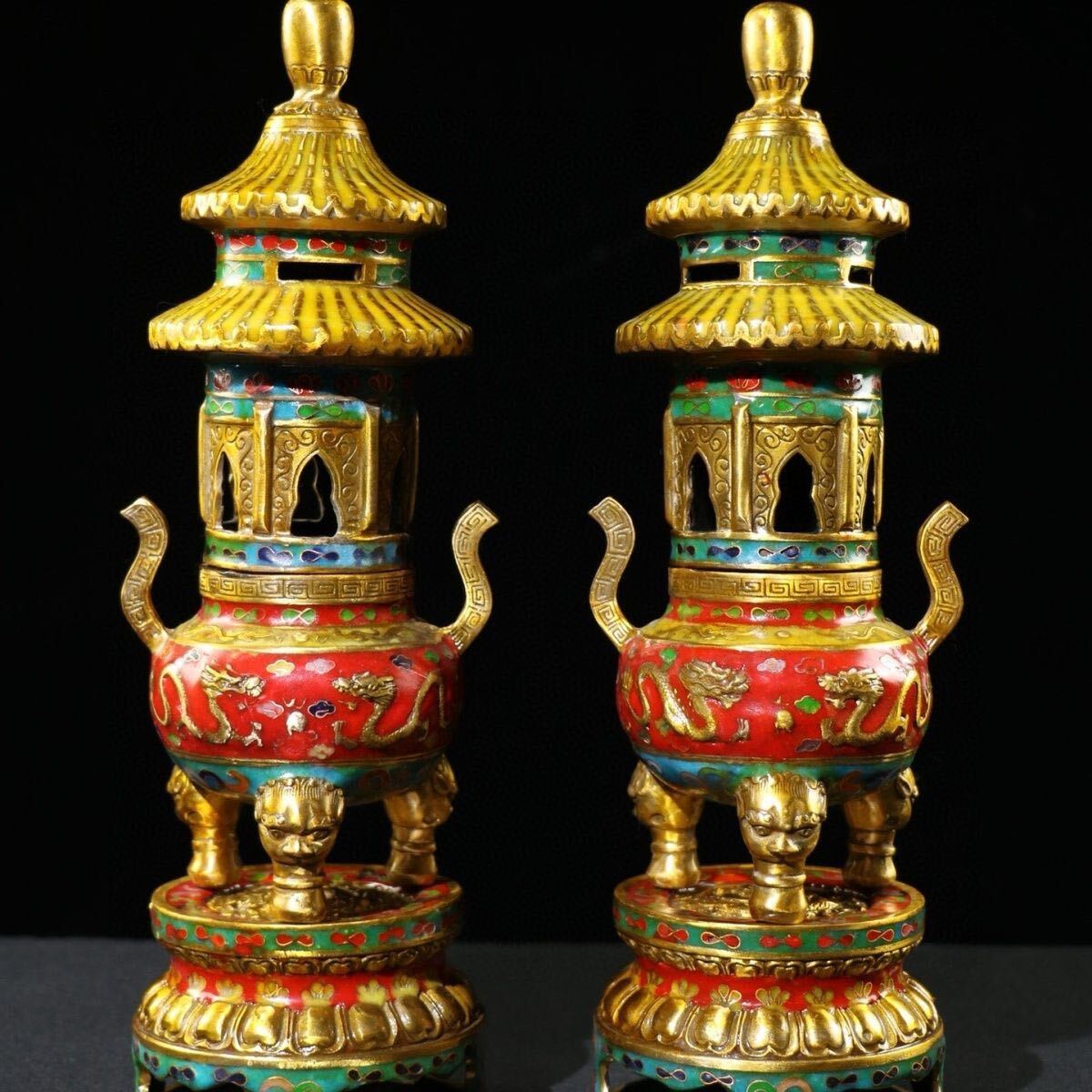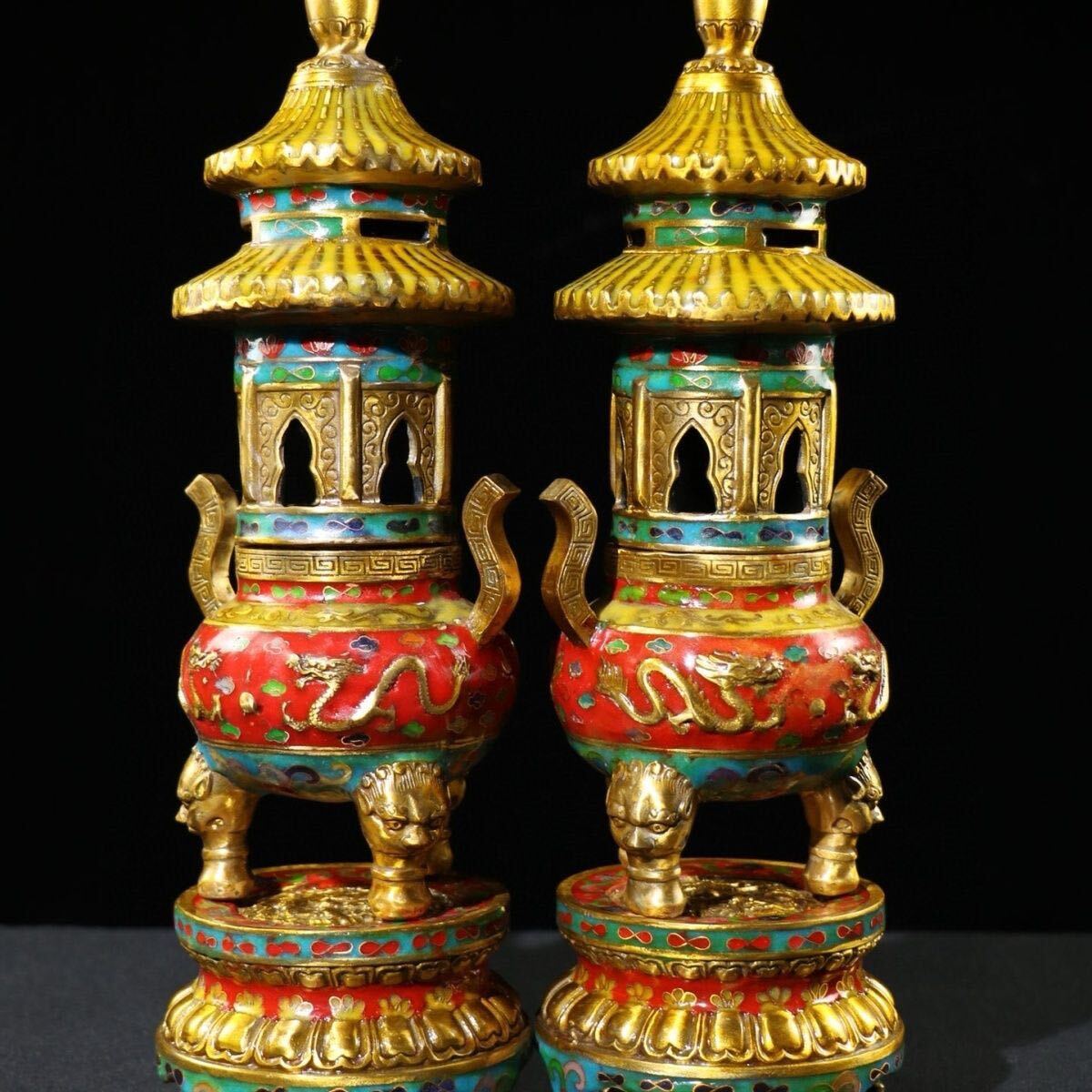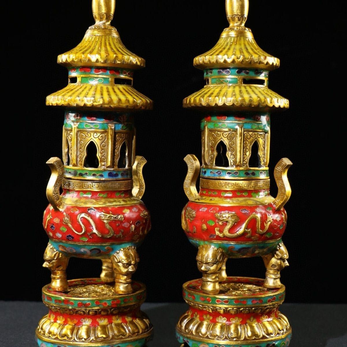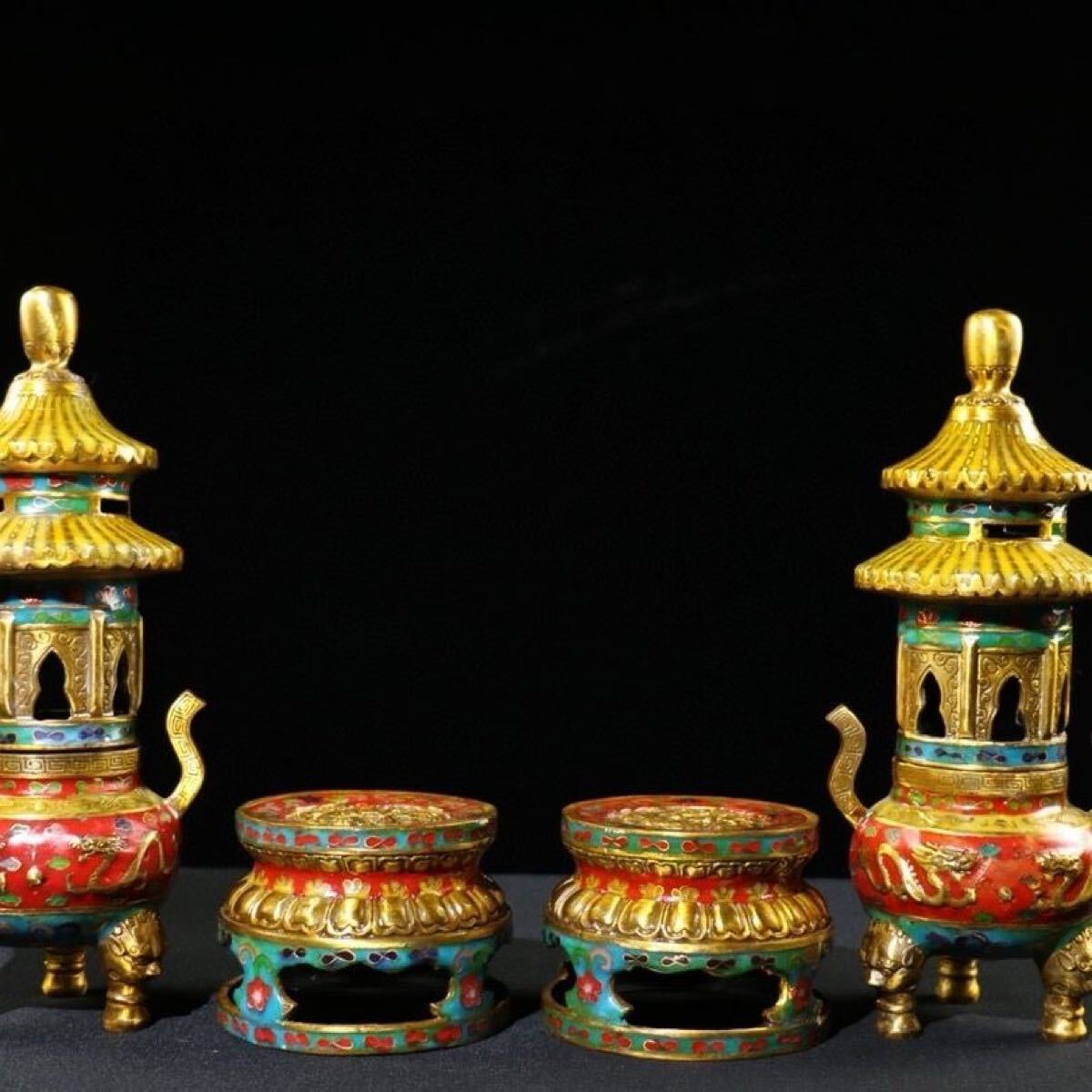 旧蔵純銅流金景泰藍 香炉 2個セット