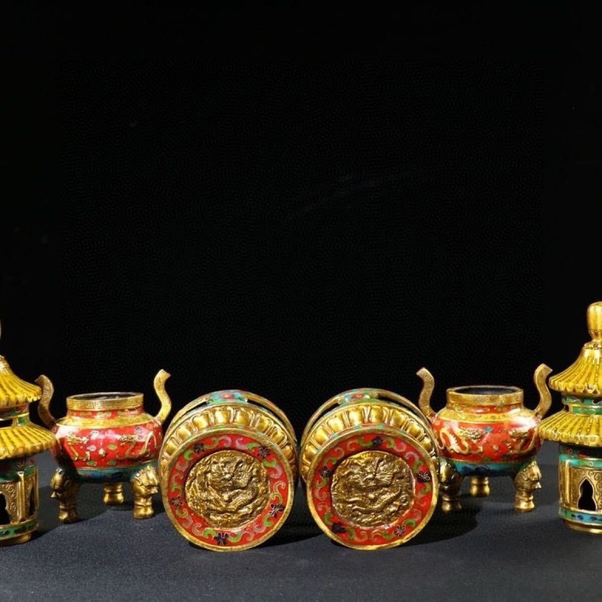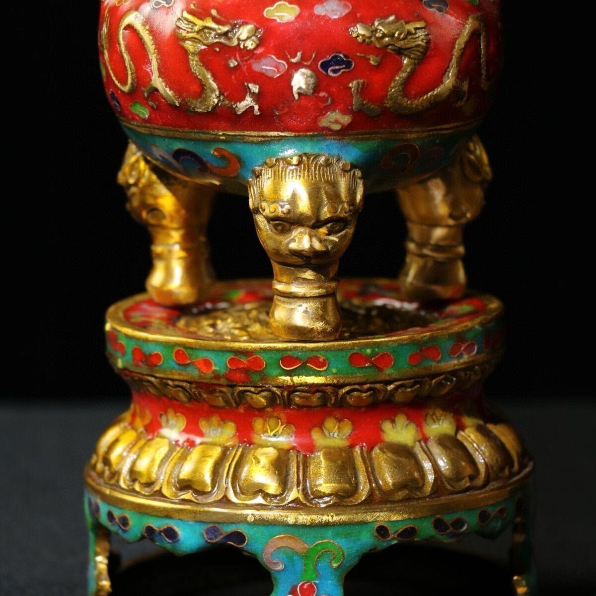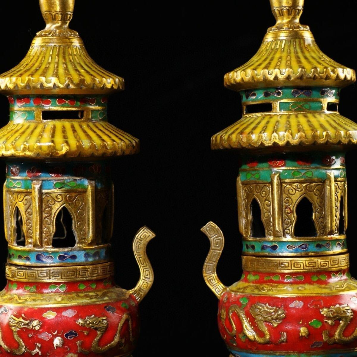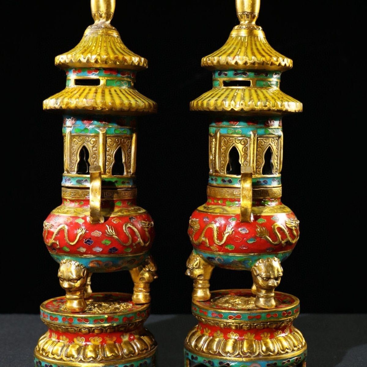 旧蔵純銅流金景泰藍 香炉 2個セット