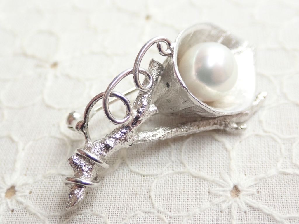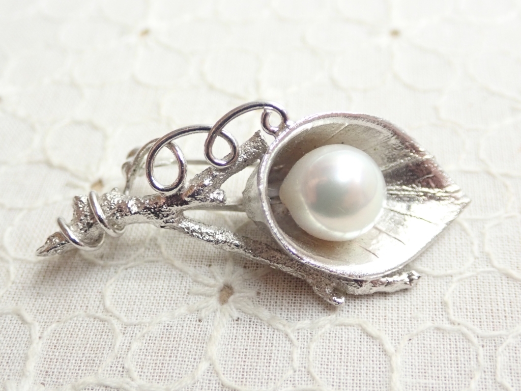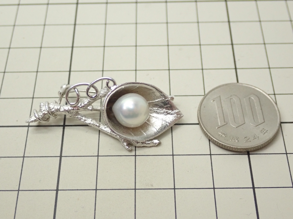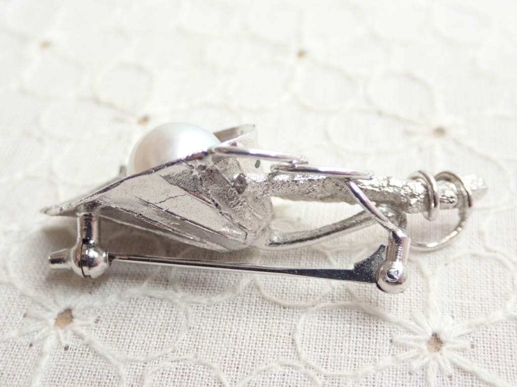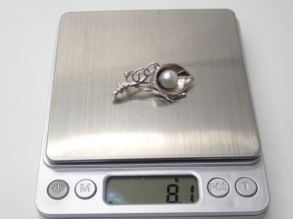 L456 ヴィンテージ シルバー ブローチ 植物デザイン バロックパール SILVER ペンダントトップにも アクセサリー Vintage brooch