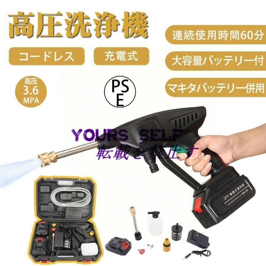 高圧洗浄機 コードレス 充電式 24V 3.6MPa高圧 マキタ バッテリー併用 バケツ タンク コンパクト ハンディ 家庭用 洗車 外壁 車掃除