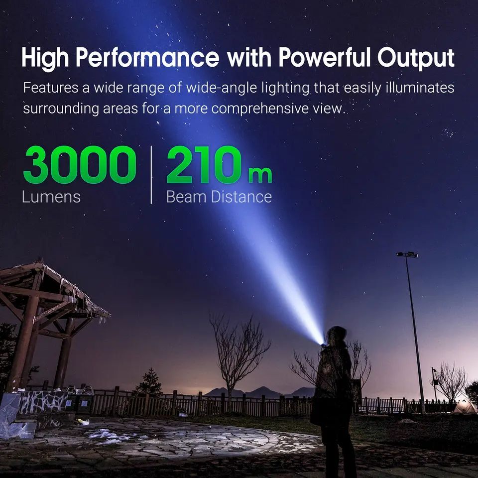 ハイモード:3000ルーメン / 2.5時間 / 210m