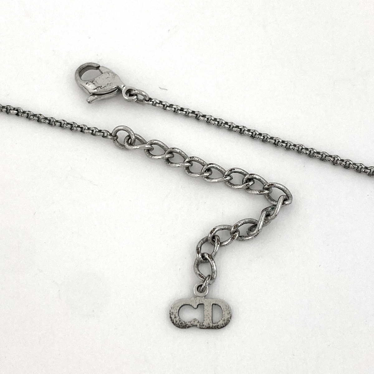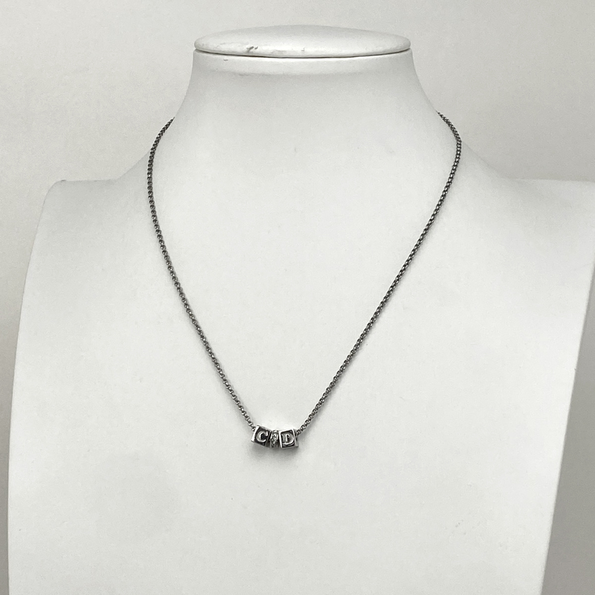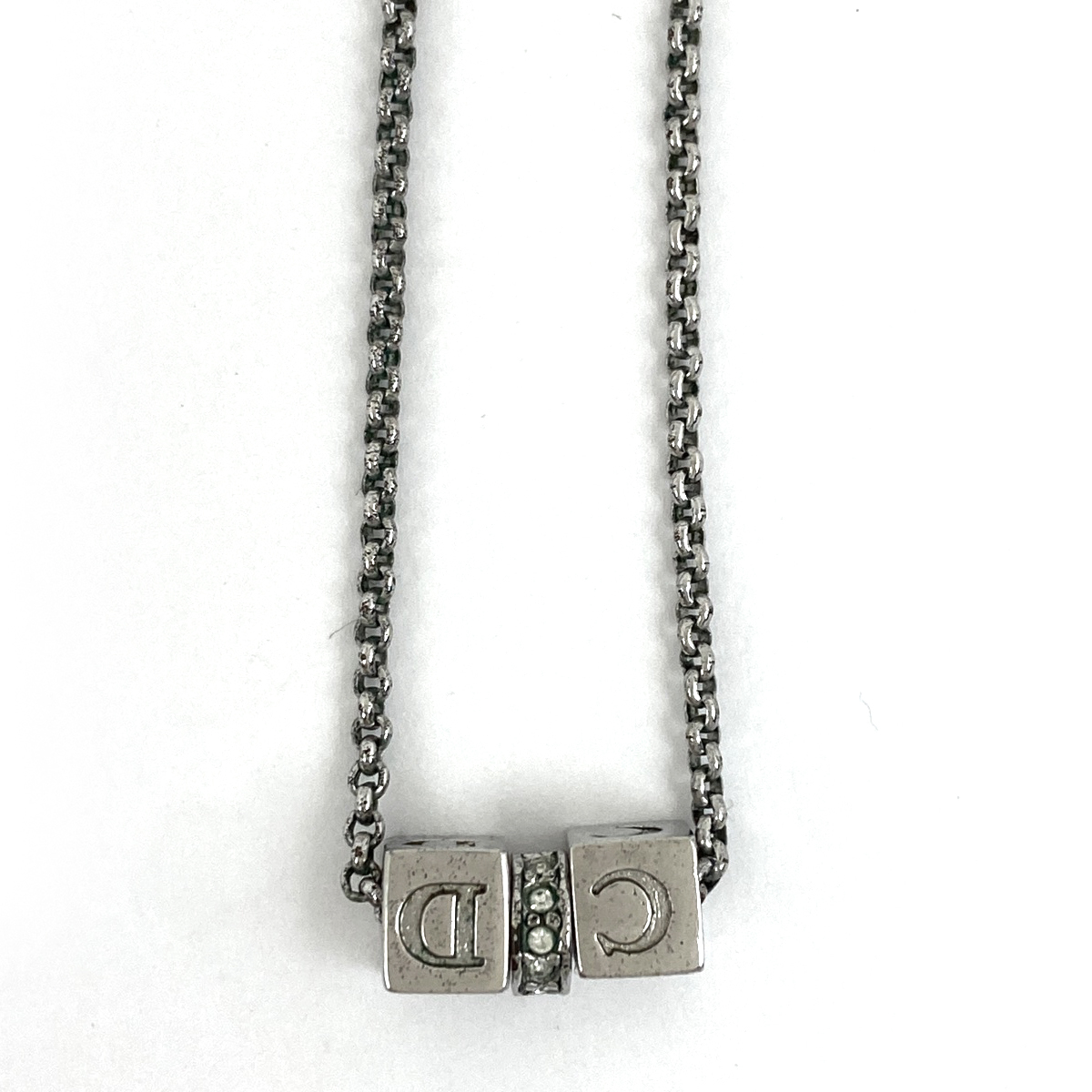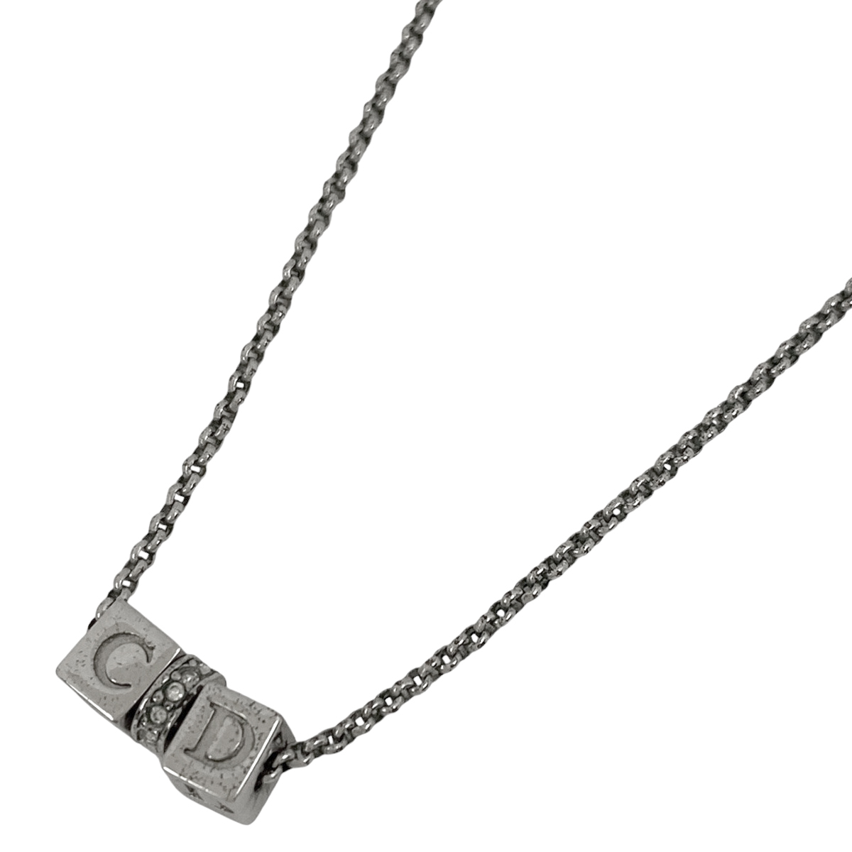 | クリスチャンディオール Christian Dior ロゴ ラインストーン ネックレス キューブ シルバーメッキ シルバー レディース 【中古】 |
