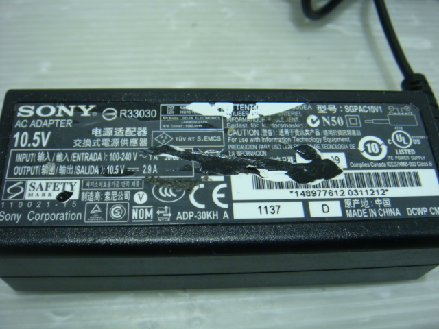 | ★商品説明★ | 仕様 ※管理番号:K6793B SONY AC ADAPTER 型番:SGPAC10V1 入力:100-240V 1A 50/60Hz 出力:10.5V~2.9A 動作確認:済み 数量:1個 電源ケーブル(他社品)はついております。 ※ラベルにキズあり 商品につきましての詳しい情報はメーカーにてご確認くださいませ。 状態 中古品ですので使用感が御座います。 傷、汚れ、シール跡などが御座います。 適用機種はご確認くださいませ。 |
