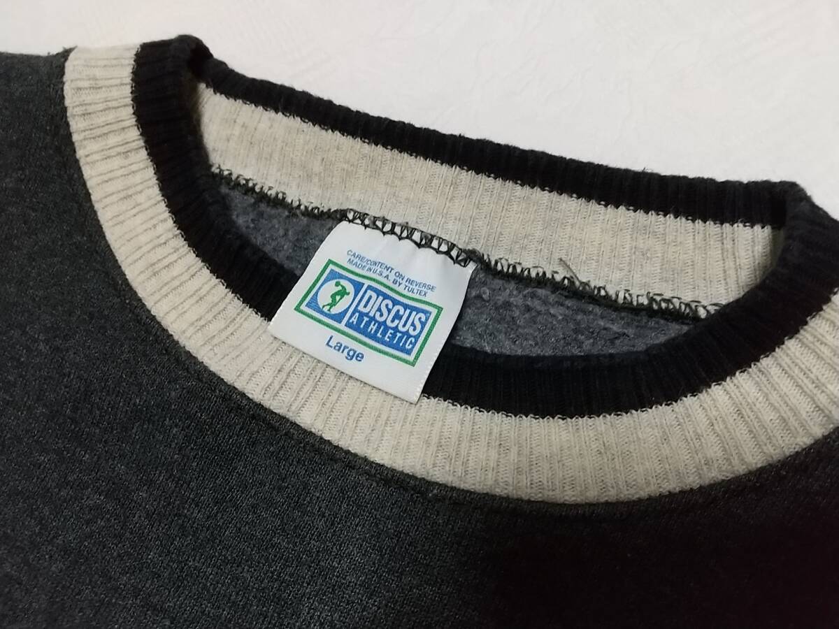 ネックのWカラーが特徴的なディスカス スウェット USA製でございます。
