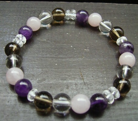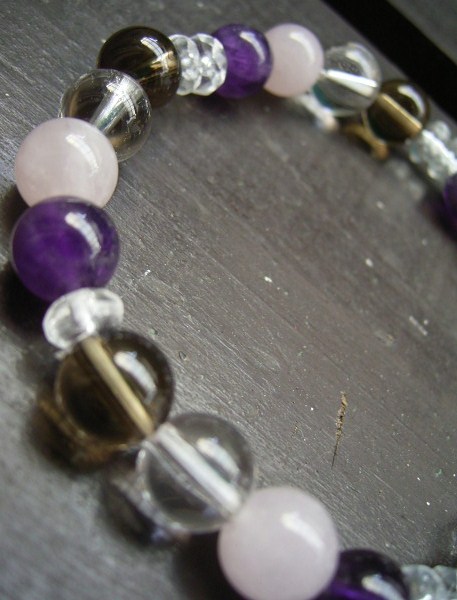 ローズクォーツxアメジストx煙水晶x水晶ブレスレット 天然石 パワーストーン