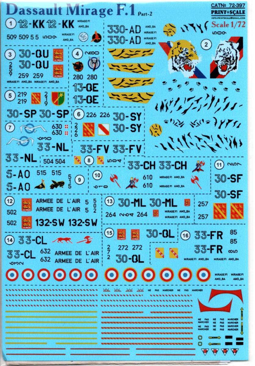 1/72 Print Scaleプリントスケールデカール 72-397 Dassault Mirage F.1 Part-2