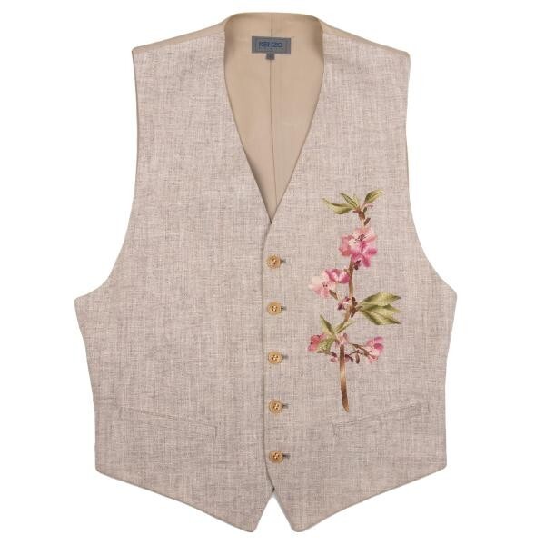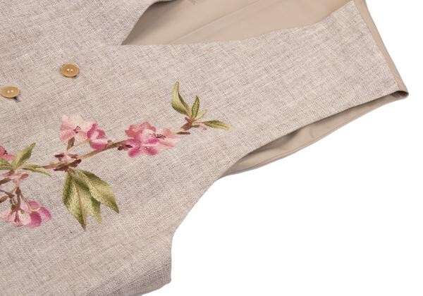 | ケンゾーKENZO 花柄刺繍切替ジレベスト ピンクベージュ他F |