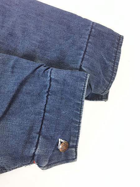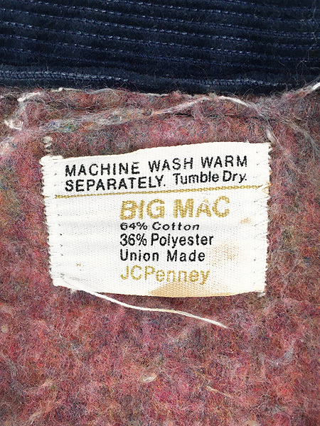 襟内側コーデュロイ・裏地は玉数の少ない単色レッドのアクリル系ブランケットライナー・刻印ボタン。