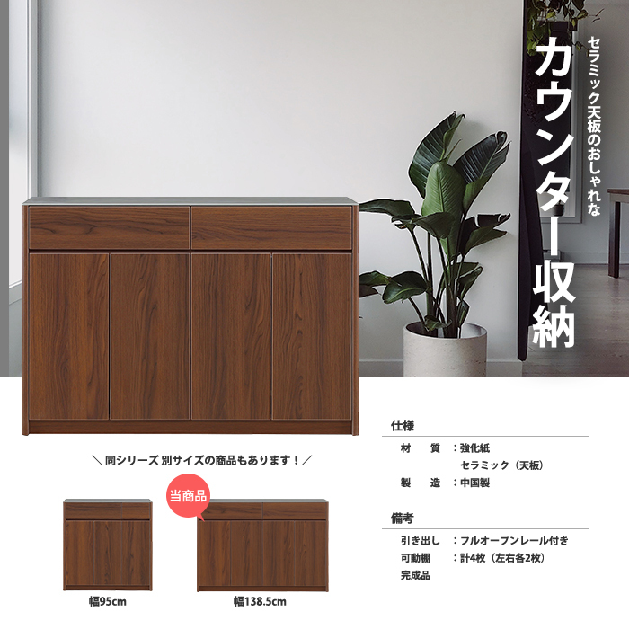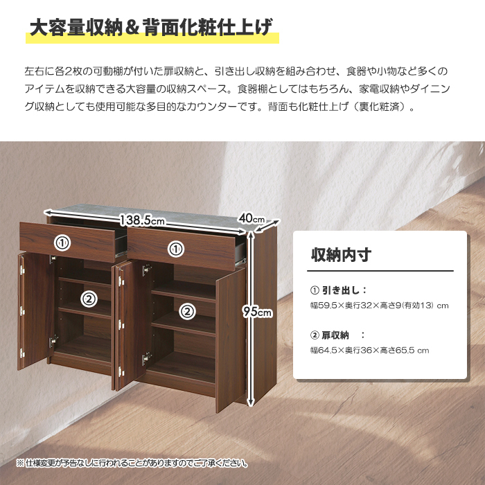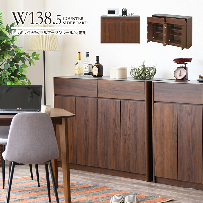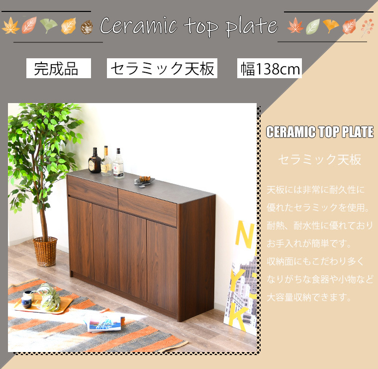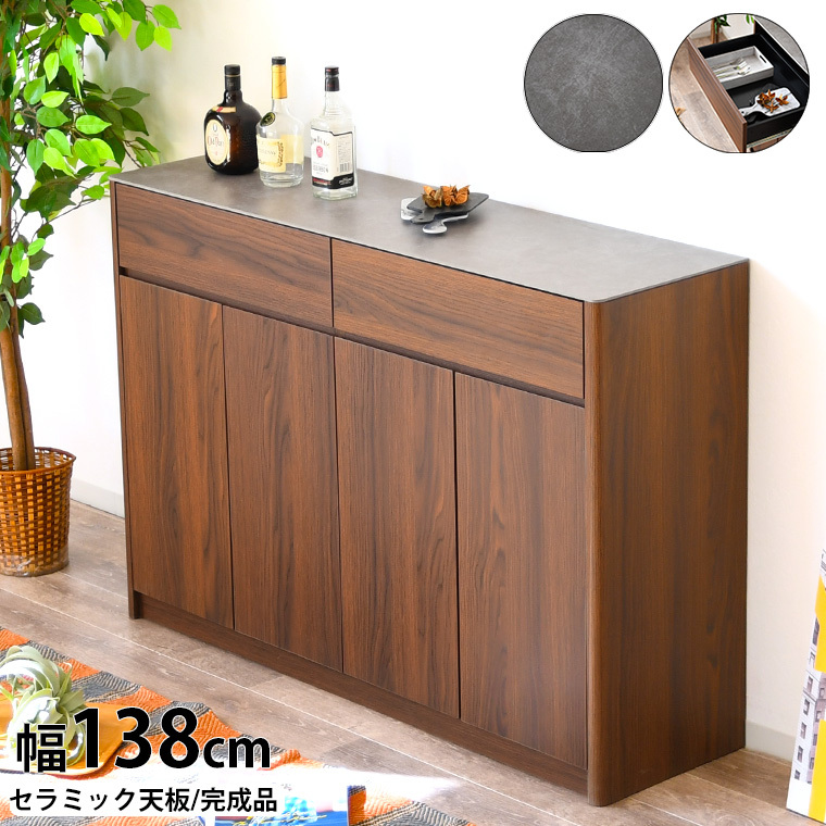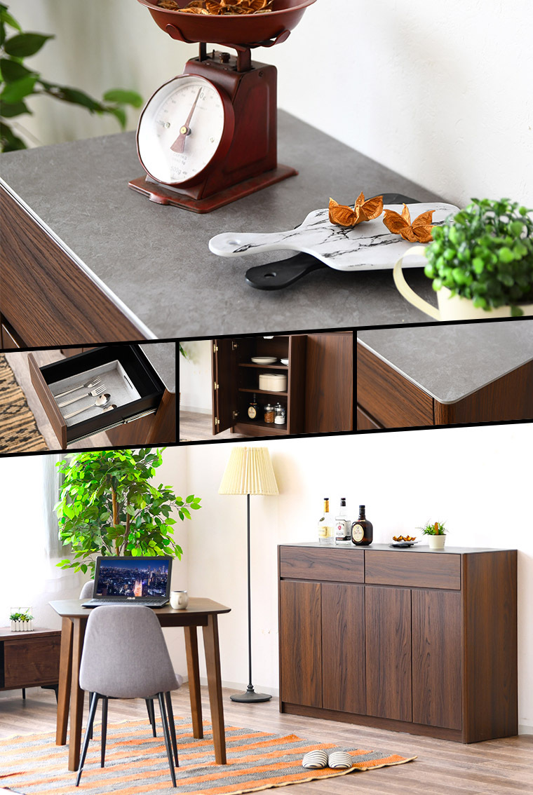セラミック天板 食器棚 サイドボード レンジ台 キッチン収納 カウンター リビング 収納 作業台 大型 裏化粧 可動棚
