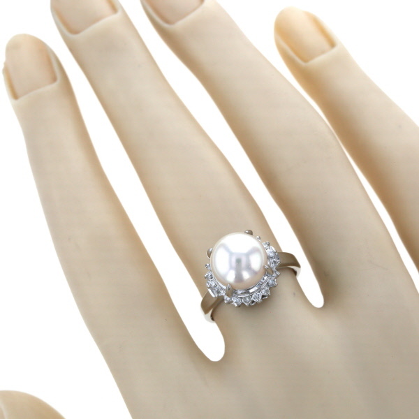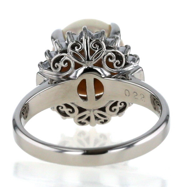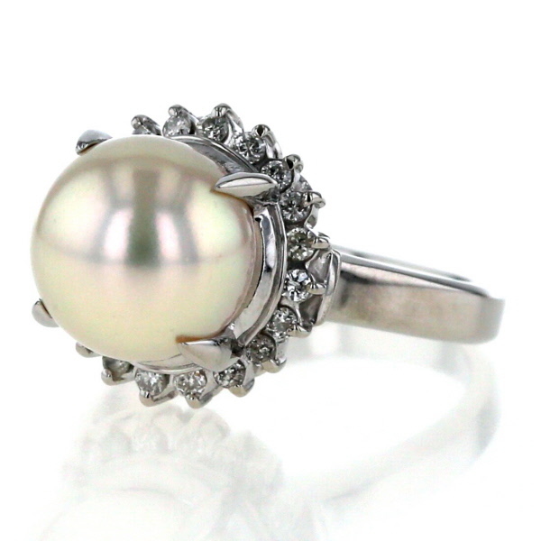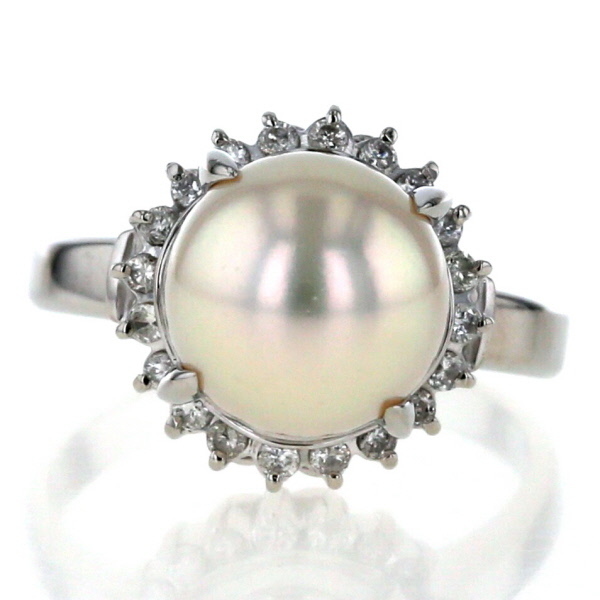 | 商品紹介 | プラチナで作られたリングです。 ラウンド型の真珠を1粒、その周りをダイヤモンドで囲んでいます。 真珠の上品な輝きとダイヤモンドの煌めきが、美しく調和しています。 |