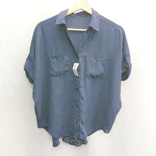 ◇ ⊂◎●未使用●Φ AS KNOW AS PINKY アズノゥアズピンキー バックレース 半袖 ブラウス サイズ※ ネイビー レディース E