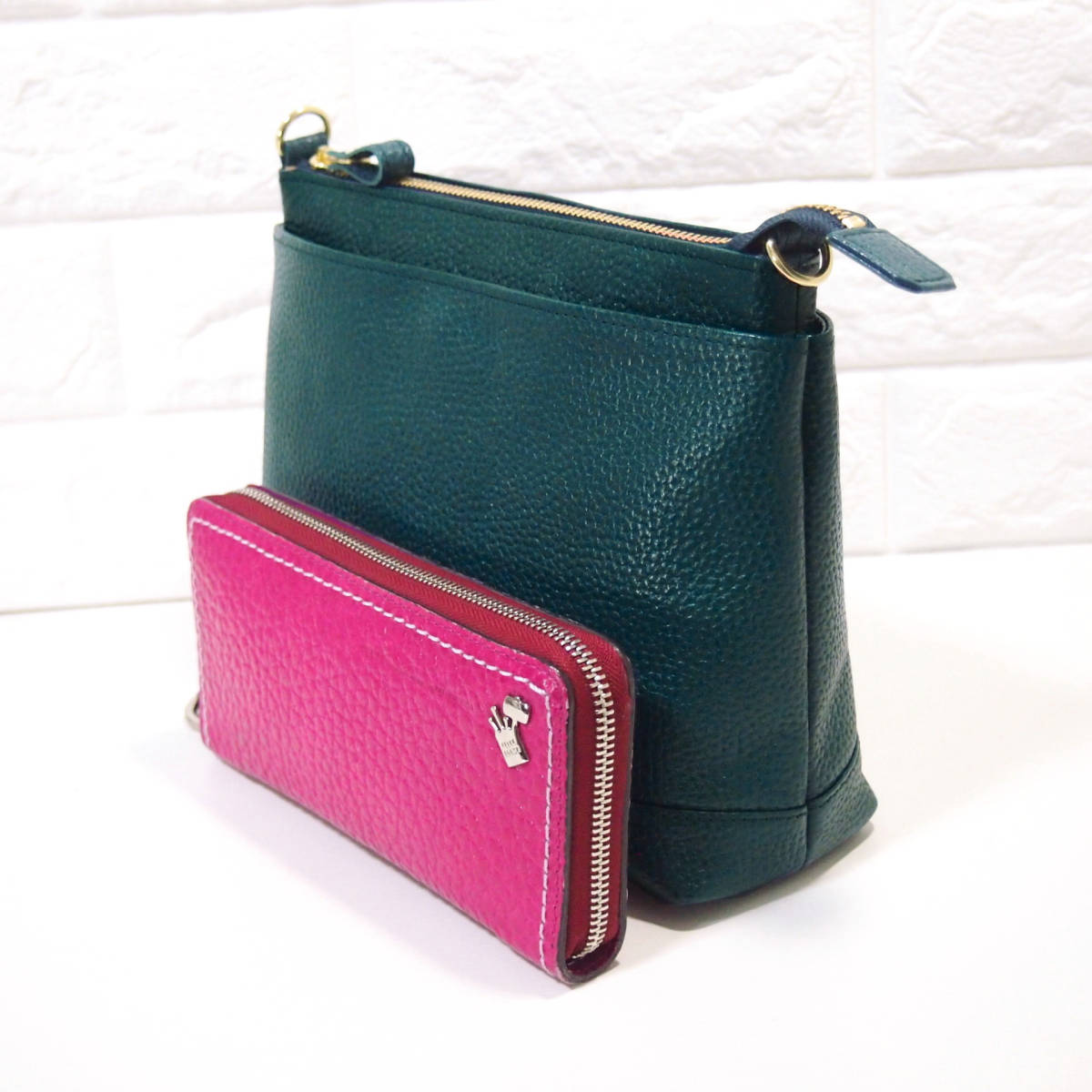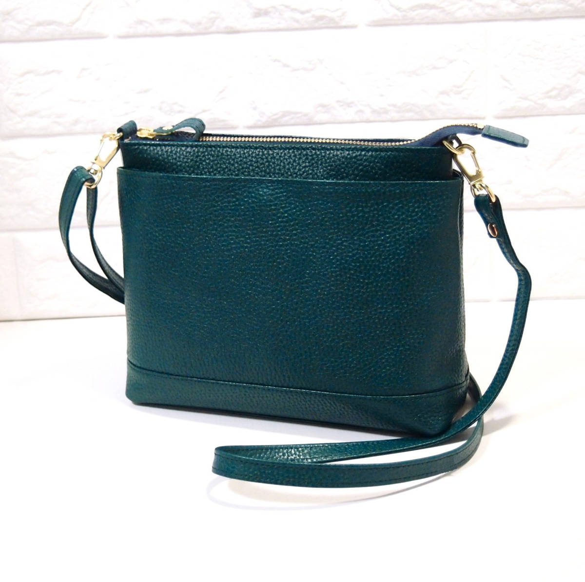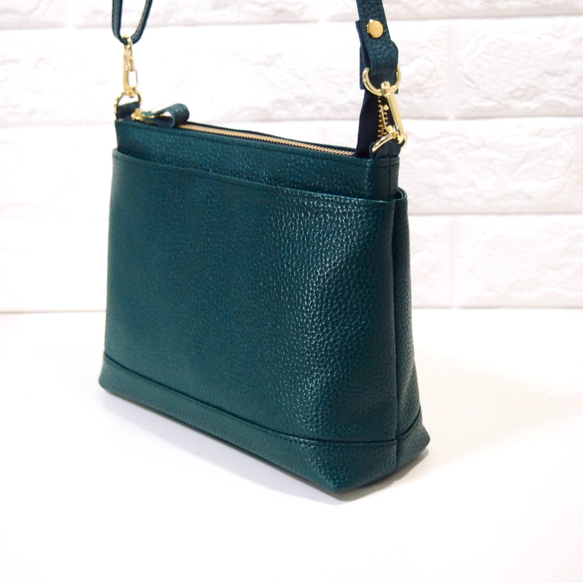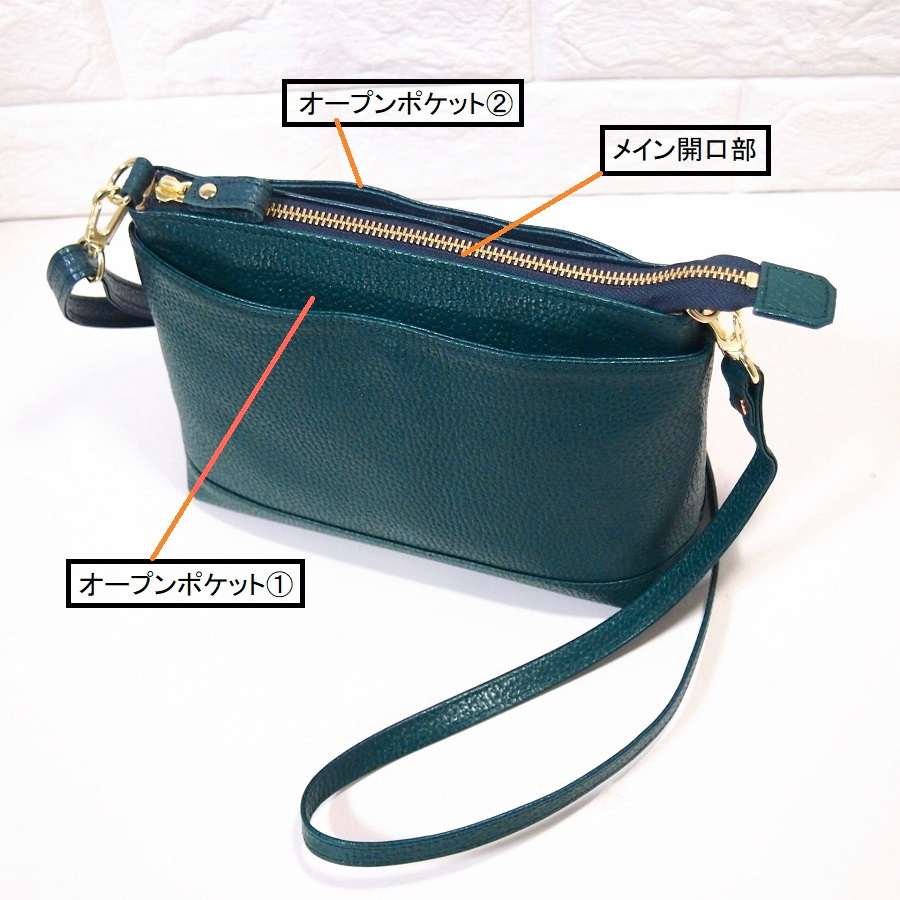 ★新品★ハンドメイド★日本製★本革★トリプル収納Ⅱ★収納多数★斜め掛けショルダーバッグ★お財布ポシェット★ブルーグリーン★超軽量▲