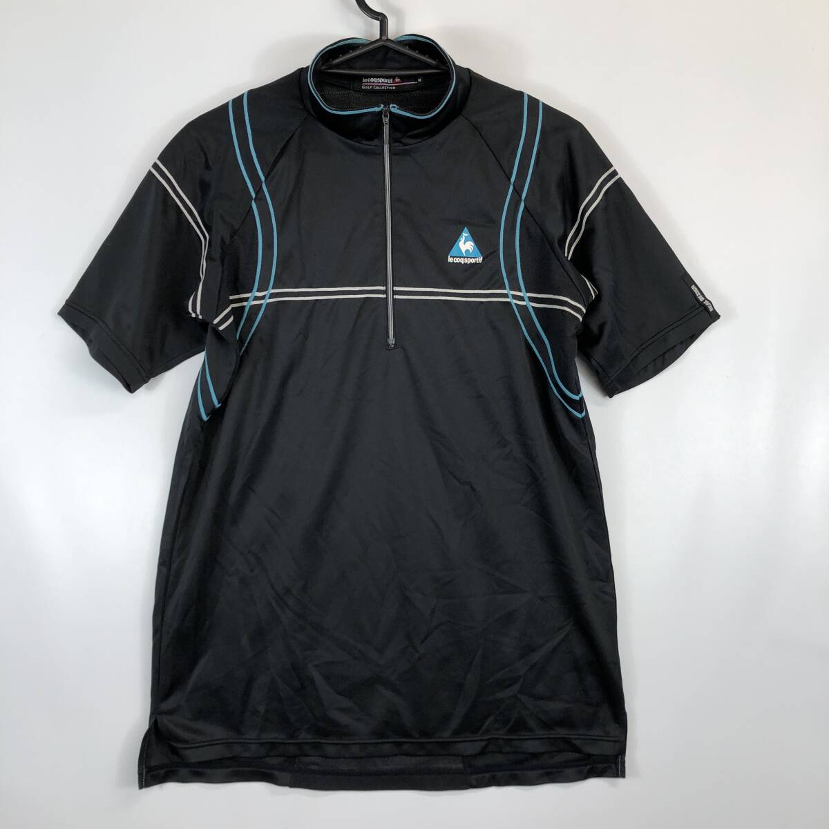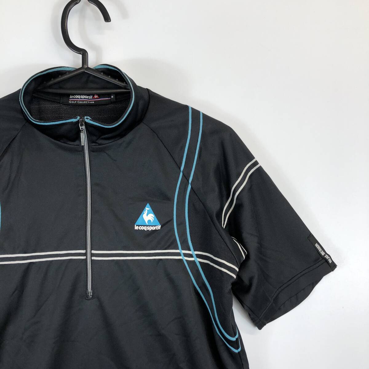 ルコックスポルティフゴルフコレクション ハーフジップ 速乾半袖シャツ ブラック Mサイズ QG2623