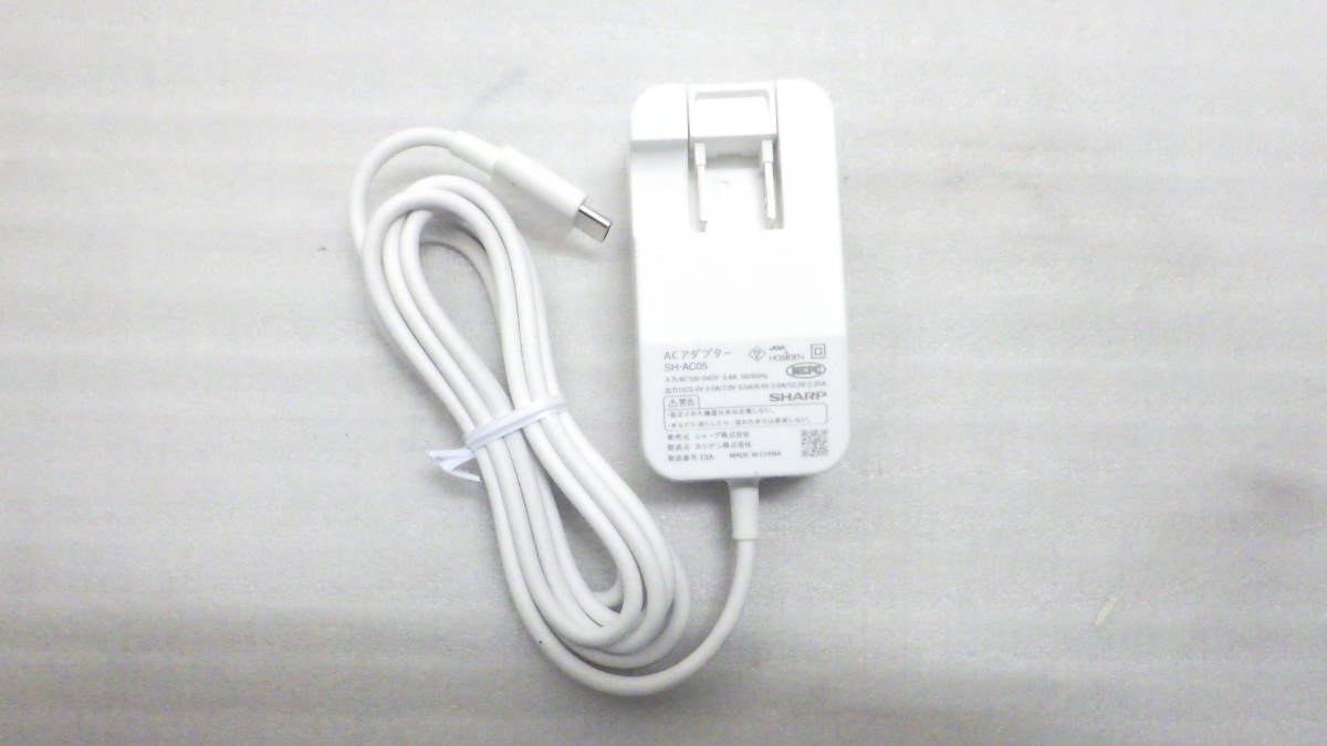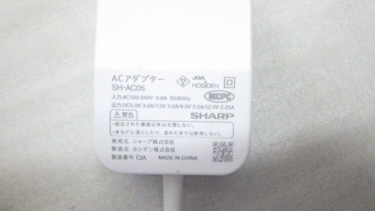 SHARP USB Type-C 急速充電ACアダプタ SH-AC05 5V 3A/7V 3A/9V 3A/12V 2.25A 27W スマホ タブなど用 中古動作品