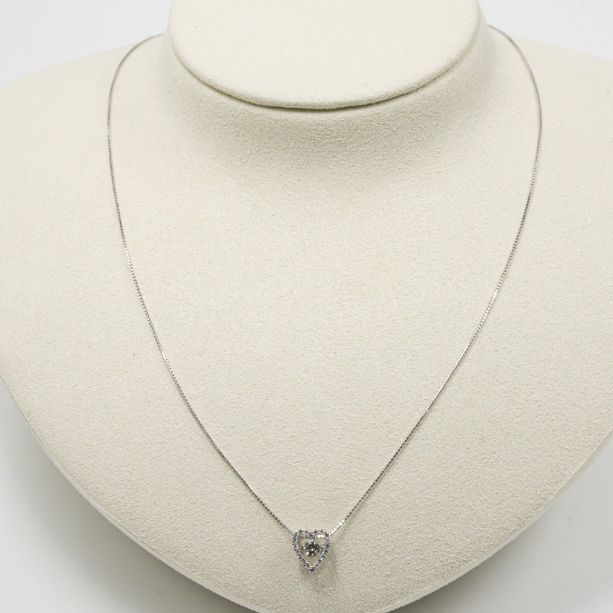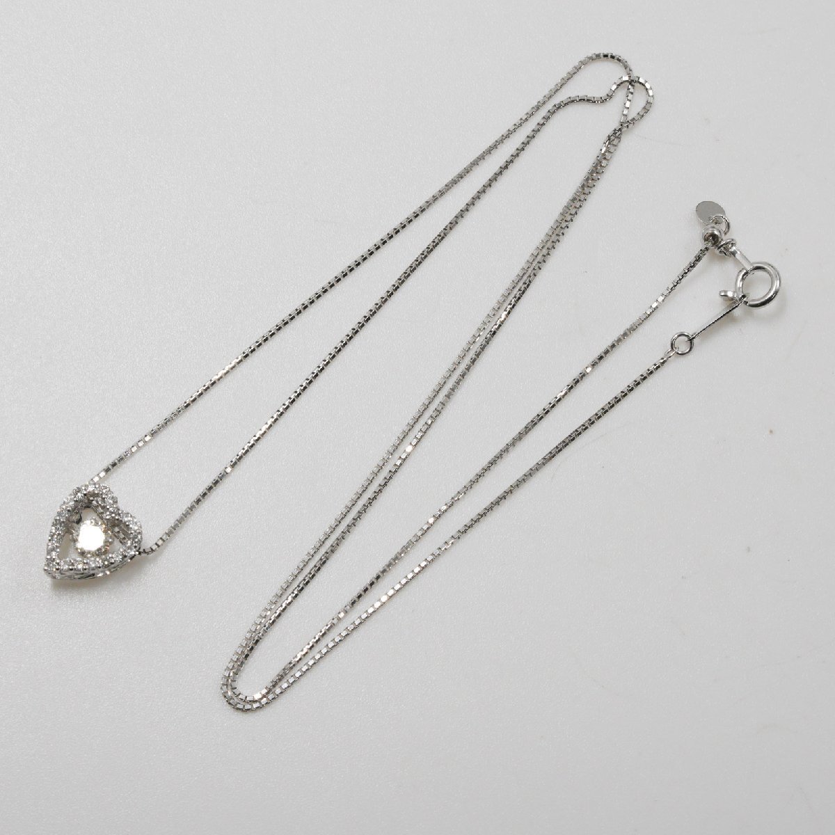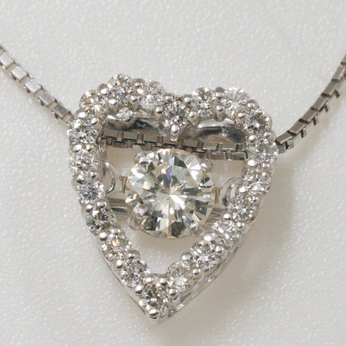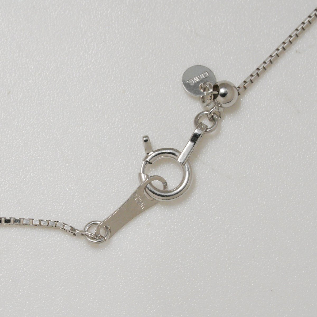 センターのダイヤが揺れるデザインです。ややイエロー系ですがインクルージョン少なめで輝きのあるダイヤがセッティングされています。スライドタイプのチェーンがついていますので、お好みの長さに調整してご使用いただけます。